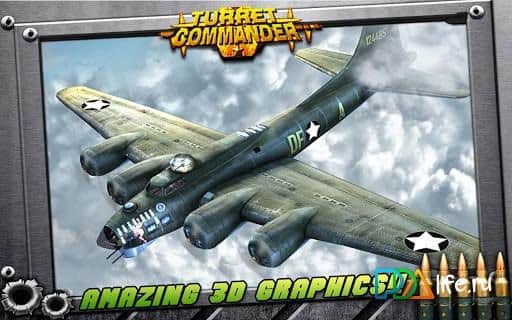 Turret Commander - это игра на андроид которая позволит вам почувствовать себя в роли стрелка на военном самолёте. Садимся в башню бомбардировщика B-17 и отбиваемся от вражеских самолётов, которые не дают нам долететь до нужного места и сбросить бомбы.
