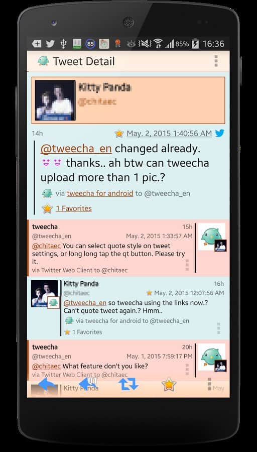 Не смотря на легкомысленный внешний вид, перед вами довольно функциональное приложение для Twitter. Оно может работать сразу с несколькими аккаунтами, позволяет настраивать цветовые обозначения, имеет темную и светлую тему оформления, позволяет просматривать статус пользователя, а при необходимости блокировать его и его сообщения. Есть возможность создавать черновики, публиковать сообщения, делать ретвиты и многое другое. При этом работает программа очень быстро, имеет интуитивно понятный интерфейс и удобное управление в виде привычных свайпов.