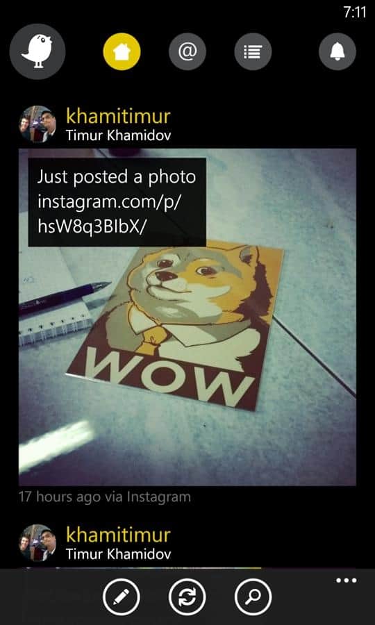 Tweet It! - приложение является одним из клиентов Twitter для windows phone. Объединение красивой анимации, понятный интерфейс и большое количество функций дадут вам ощущение что вы общаетесь через Twitter. Приложение поддерживает все основные функции такие как: просмотр твитов, фотографий и видео с YouTube. Теперь вы всегда будете в курсе новостей и современных тенденций.