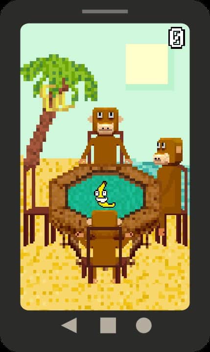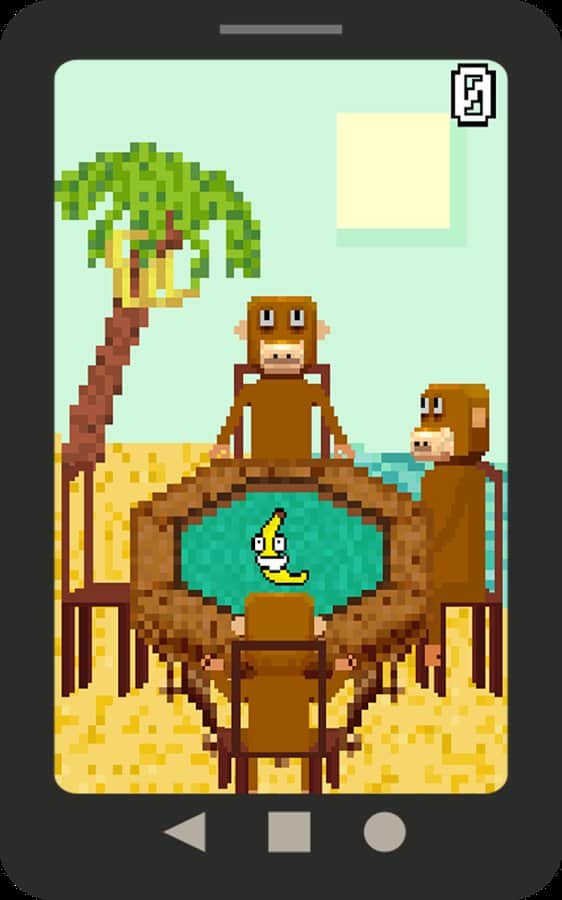 Twiddly Banana – очень простая, но в тоже время сложная игра, где вы будете играть роль банана. Игра начинается с того что за столом сидят три обезьяны которые не могут поделить между собой один банан, пока они решают кому достанется банан вы должны как можно быстрее нажать на банан и не дать им съесть вас. Тренируйте свою реакцию и сообразительность, пытаясь обхитрить всех обезьян, а также своих друзей, с которыми вы сможет играть в эту игру. Игра порадует вас яркой пиксельной графикой и до смешного простым управлением. Покажите всем свою хорошую реакцию и установите свой рекорд в этой игре.