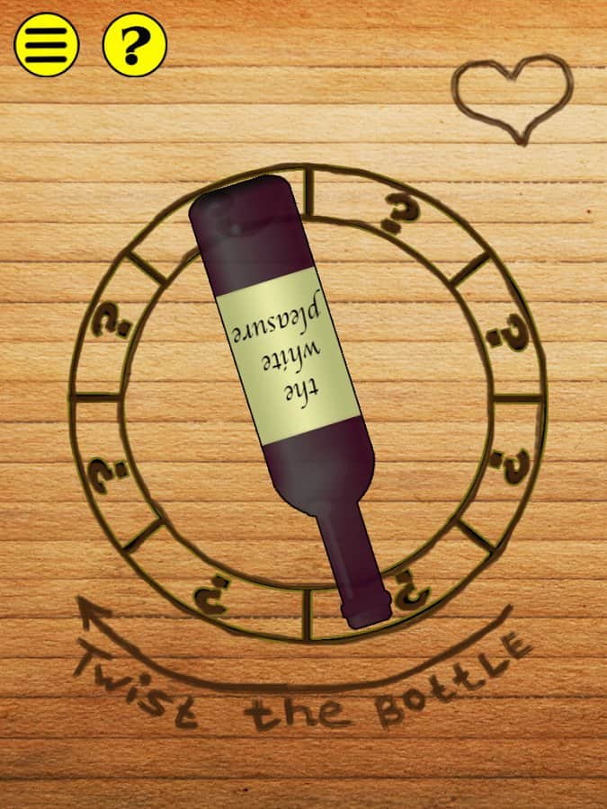 Twist the Bottle - К вашему вниманию представляется старая добрая игра «бутылочка» на новый лад на ваших android устройствах. В игре доступны три основные режима: алкогольный режим, при попадании на сектор дается задание, связанное с выпивкой. Любовный режим, в нем задание на любовную тему. А также режим сумасшествия, в котором нужно сделать что-то невероятное. Так же в игре есть выбор, какую именно бутылку вы хотите крутить.