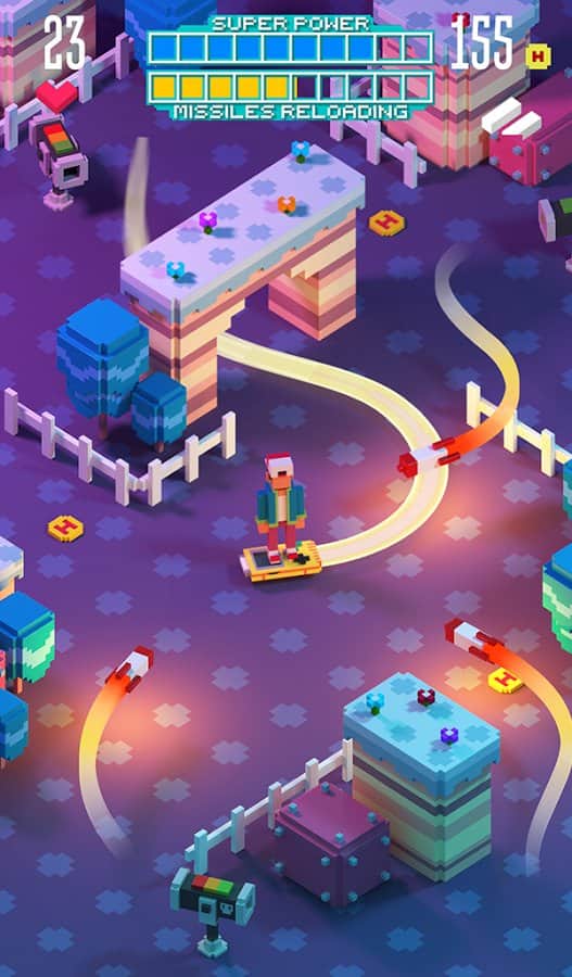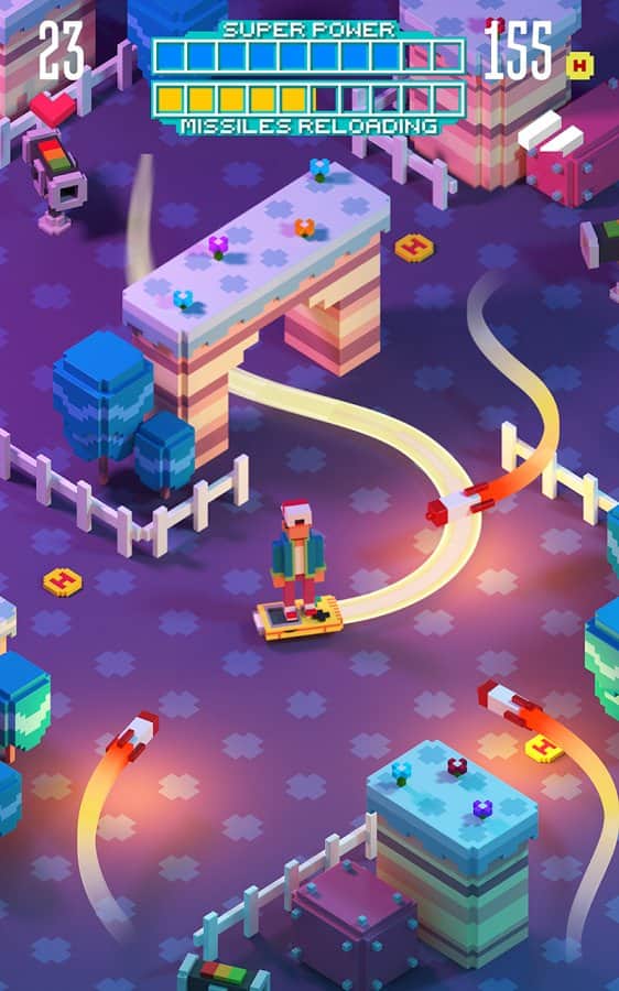 Twisty Board – управляйте движением скейтбордиста, который передвигается по различным локациям игры перемещаясь на летающем скейтборде. Игра порадует игроков простым управлением, где вы будете нажимать на правую или левую сторону экрана, чтобы ваш герой обходил многочисленные препятствия на пути и уклонялся от летающих повсюду ракет. Покажите на деле свою ловкость и отличную реакцию, продержавшись от столкновения с преградами как можно дольше. В игре представлено шесть уникальных миров, более 30 забавных персонажей и 2 режима игры. Играйте со своими друзьями и устанавливайте свой рекорд в этой игре.