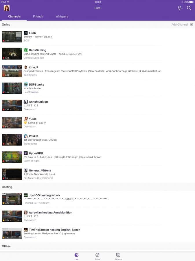 Twitch - Это приложение известно каждому геймеру, ведь именно на этом интернет ресурсе проводится показ практически всех возможных игровых турниров и даже конкурсов креативности. Это приложение создано для того что бы вы могли наслаждаться каждой секундой прямой трансляции будучи не только дома за ПК но и в любом месте. Все что вам нужно это интернет подключение, а в случае если вы хотите общаться в чате зарегистрируйте аккаунт.