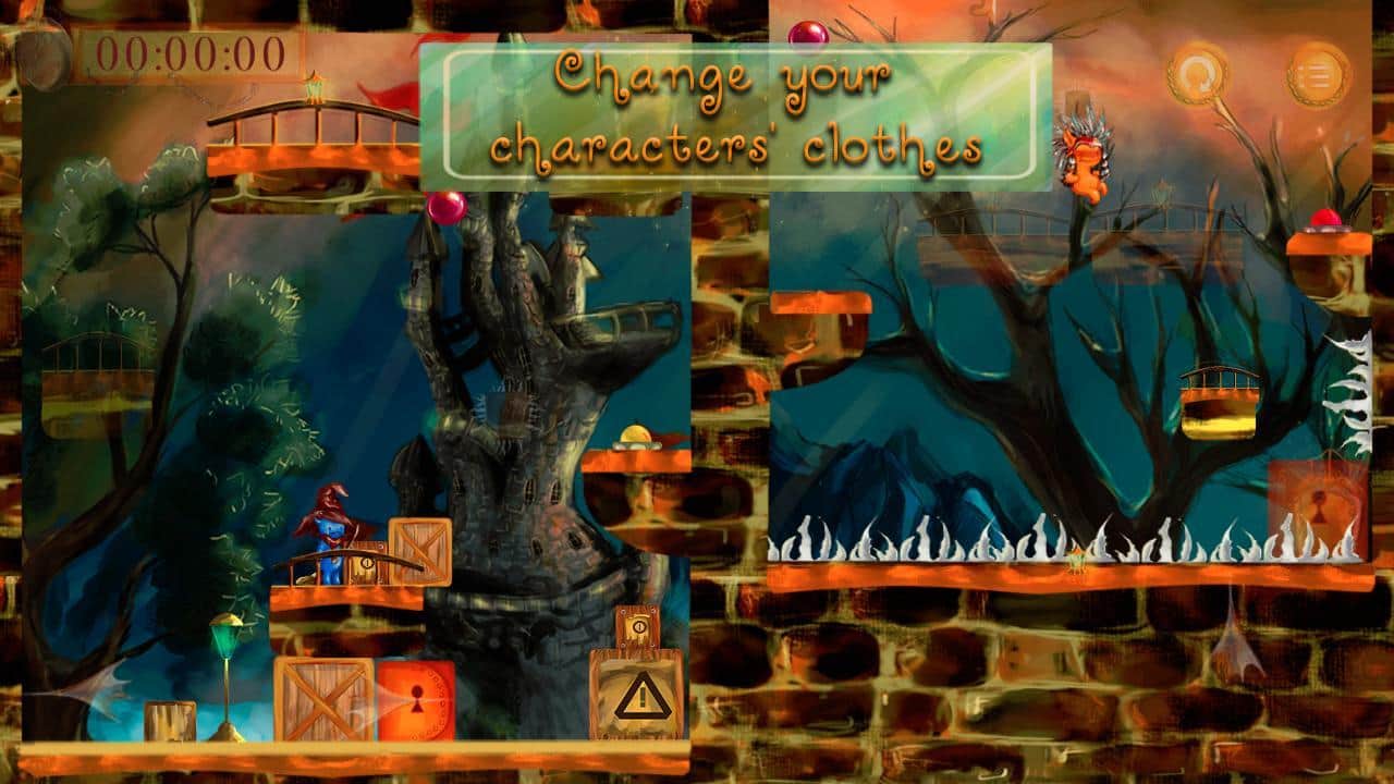 Two Parts of One – платформер где вам предстоит взять под свой контроль заколдованного мальчика и провести его по опасным мирам. В этой игре вы будете управлять одновременно двумя персонажами, путешествуя по различным мирам и ища злого колдуна, который заколдовал мальчика. Нашему герою предстоит пройти три увлекательных мира таких как: темный лес, старый замок и ледяная пещера и обойти все препятствия и ловушки. Перемещайтесь по платформам и взаимодействуйте с различными предметами и механизмами, которые помогут вам пройти уровни. По пути собирайте магические шары и получайте звезды за них, благодаря которым вы сможете открыть новые миры. Отыщите спрятанные тайники и откройте для своего героя новые интересные костюмы.