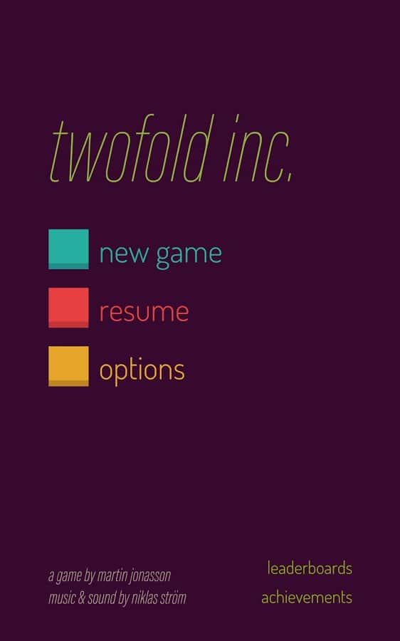 Сейчас наверно далеко не каждый вспомнит что же это за студия grapefrukt games, однако еще несколько лет назад во времена выхода ее первого проекта для платформы Андроид, под названием rymdkapsel эта компания была у всех на слуху. rymdkapsel - медитативная стратегия завоевавшая огромную популярность, но в последнее время интерес к проекту поутих и про него стали забывать. Но вот ребята из grapefrukt games выпустили в свет свою вторую игру под названием twofold inc. twofold inc. - геометрическая головоломка сочетающая в себе элементы кубика Рубика, змейки, три в ряд. Как и предыдущая игра twofold inc. выполнена в минималистическом стиле и с простым, но увлекательным геймплеем.