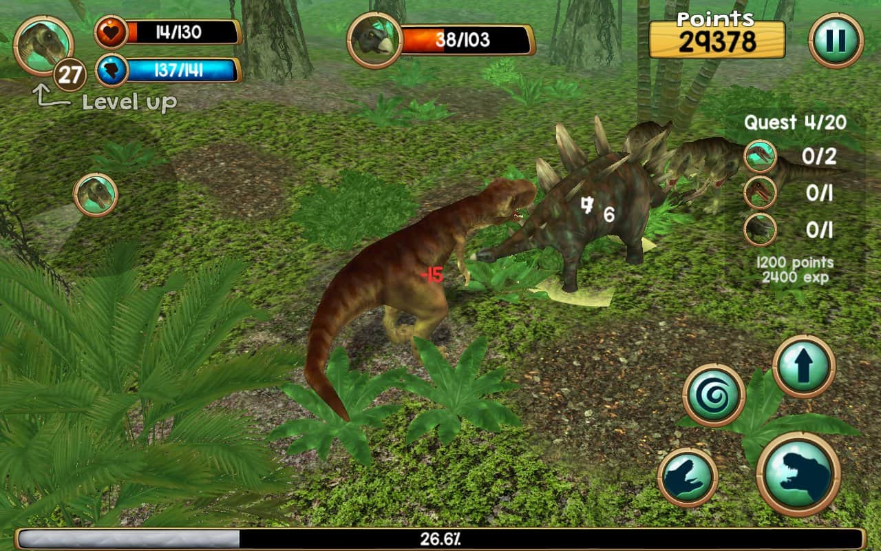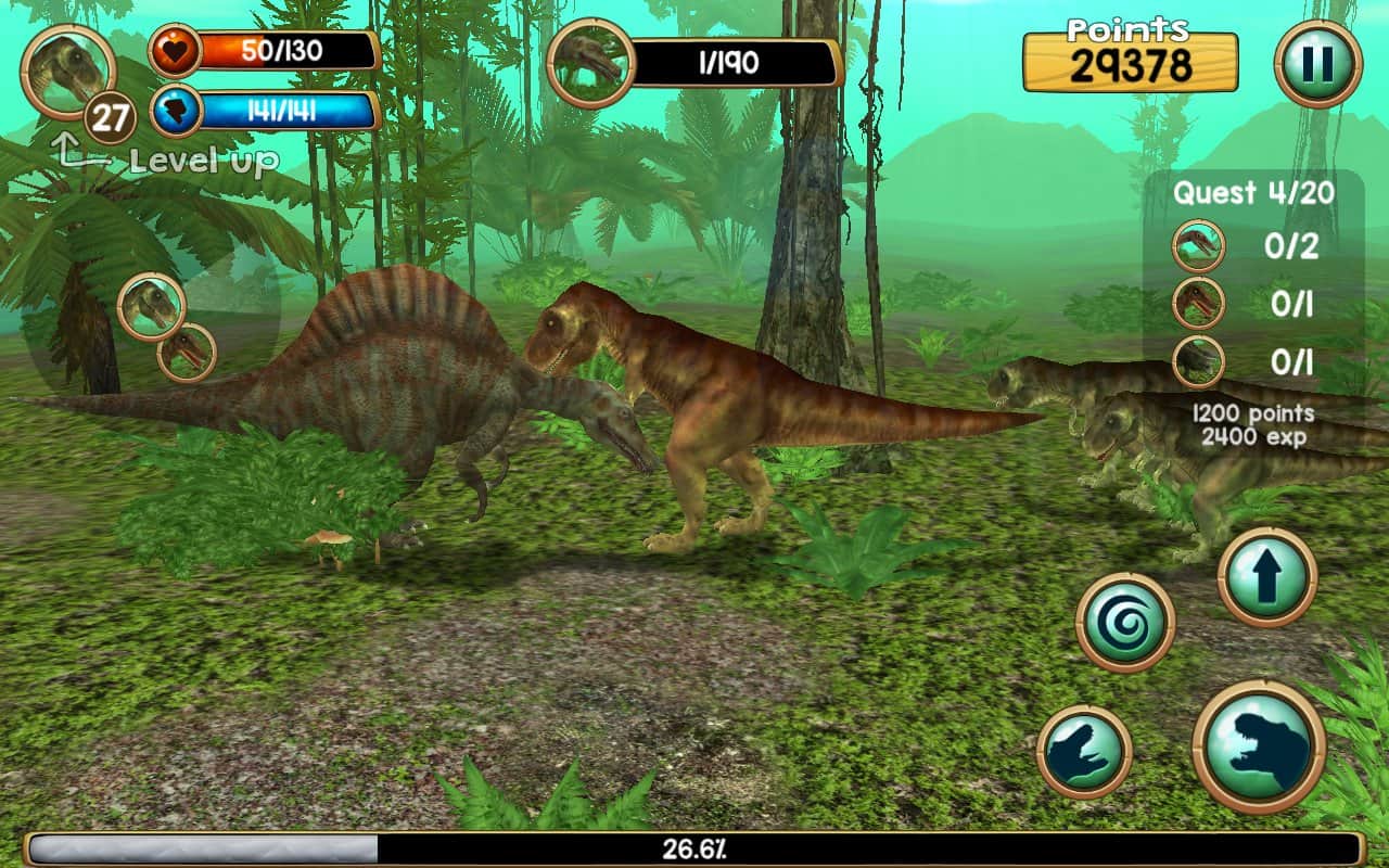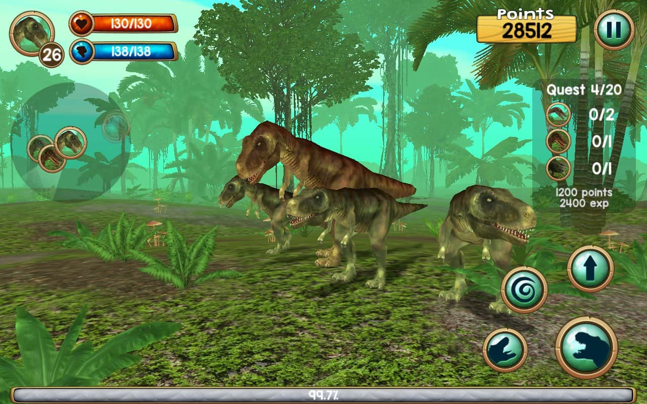 Tyrannosaurus Rex Sim 3D – реалистичный симулятор огромного динозавра, которому предстоит выживать в опасном мире. Эта игра перенесет вас в далекие времена, когда на планете жили и процветали динозавры. Станьте одним из таких хищников и доминируйте над другими динозаврами, добывая себе пищу и создавая семью. Повышайте свое здоровье и энергию, добывая еду и питье, а также обзаведитесь потомством, которое вы будете обучать охотиться и делать их своими лучшими компаньонами во всех делах.