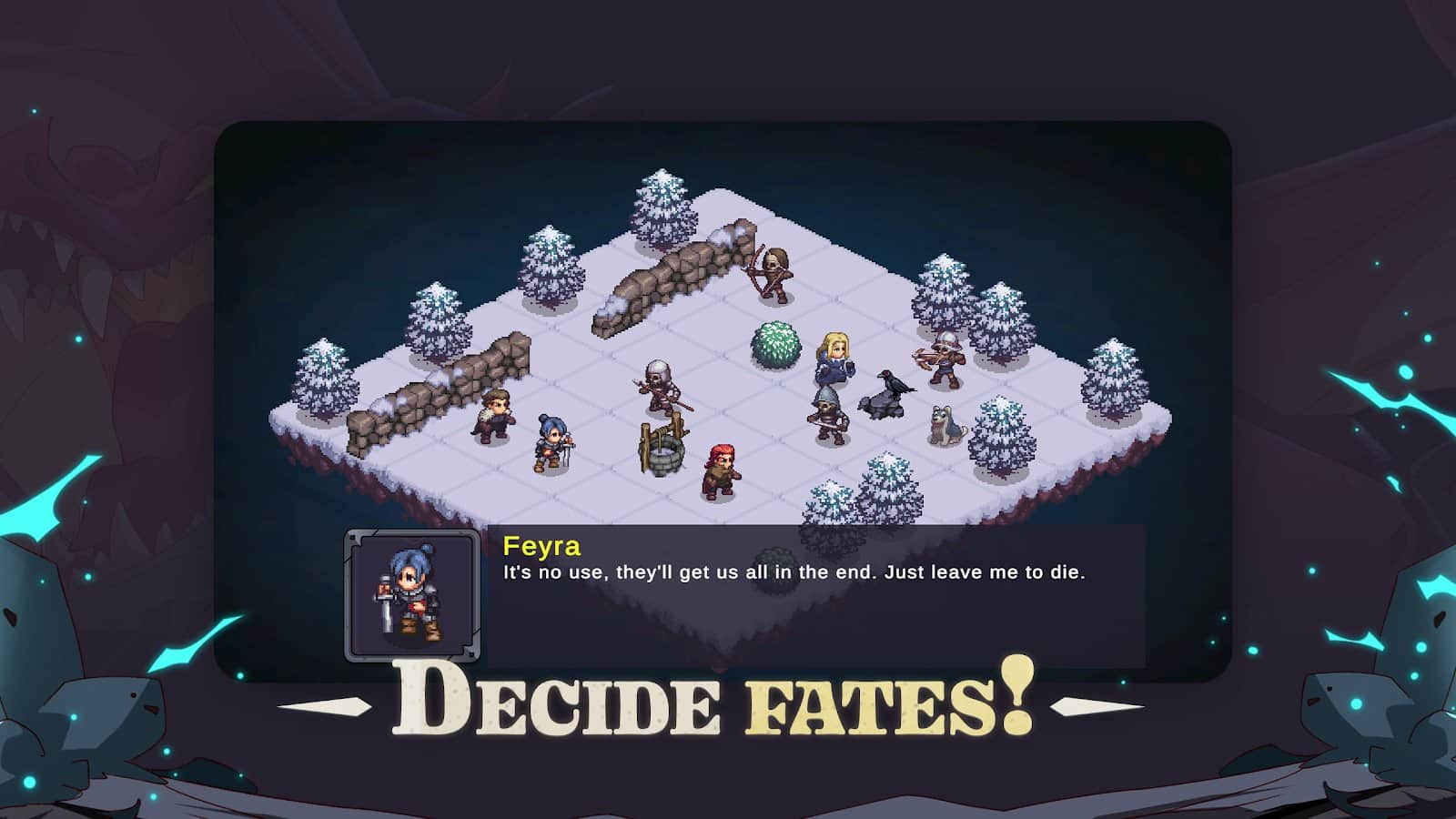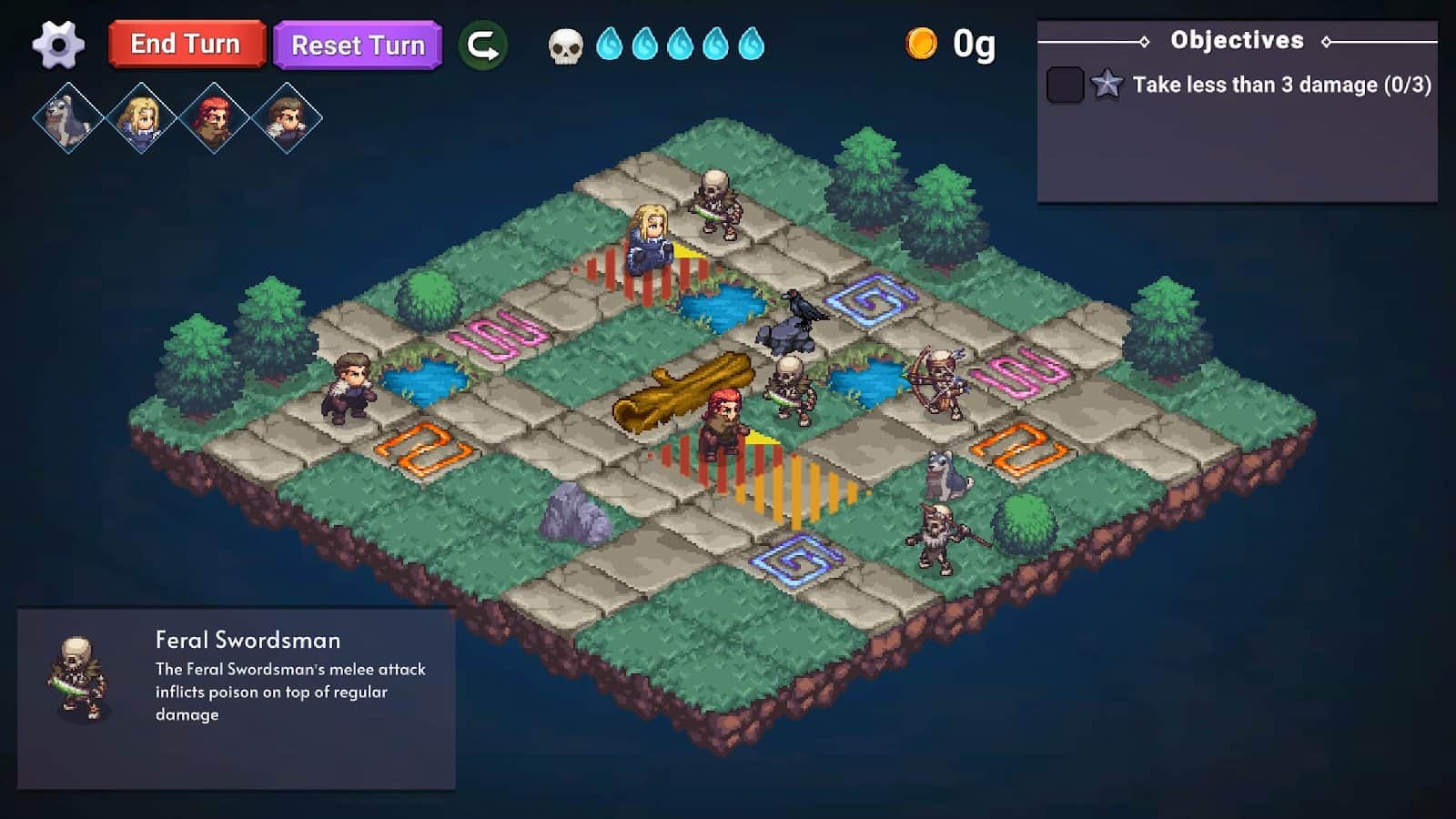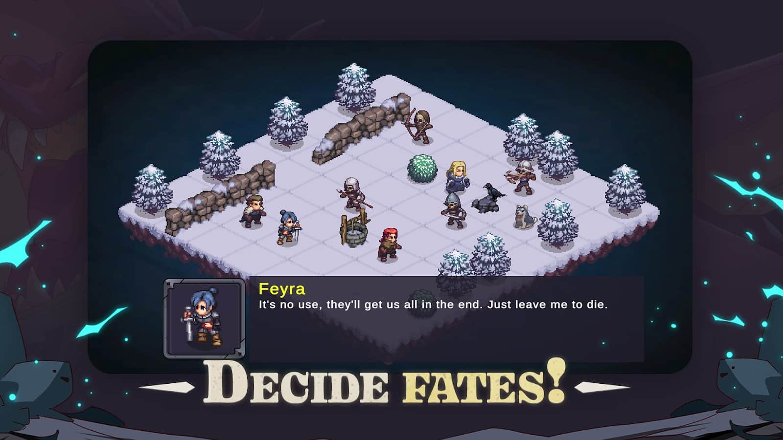 Давольно интересный клон Into the Breach. Нам тут дают постоянно расширяющийся лагерь в котором обитают герои и их питомцы. Базово нам на выбор дают 4 героя разных классов и 2 питомцев, при этом один из героев занимает роль лидера (а это влияет на то, какие бонусы получает отряд). Для открытия новых бойцов надо выполнять ачивки.