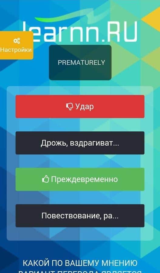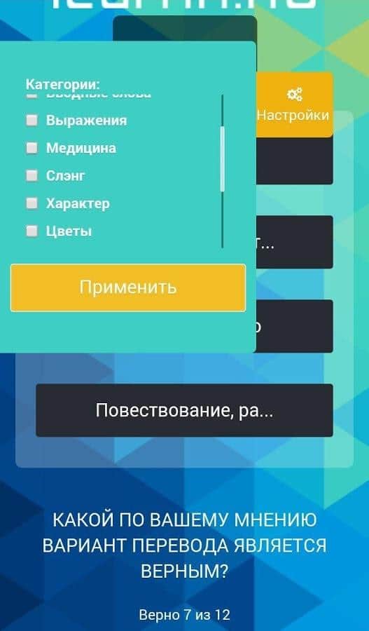 Учим английский язык с Learnn - Давно мечтали улучшить свое владение английским языком, но никак не можете найти для этого возможность? Данное приложение поможет вам обучится английскому языку в самые короткие сроки. Учи новые слова где бы ты не находился, в транспорте или же в метро. Улучшай свои познания используя фильтр по параметрам. Хотите выучить слова в определенной сфере, тоже не проблема, просто выберите что именно хотите знать и приложение выделит нужные вам слова из более чем 10000 имеющихся. Пополняйте свой словарный запас играючи, а так же научитесь выстраивать сложные предложения.