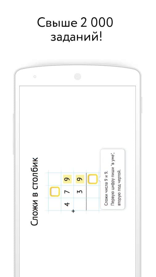 Приложение Учи.ру в увлекательной форме научит решению задач и даст возможность поучаствовать в Олимпиаде. Индивидуальный подход к изучению материала, интерактивные и яркие задания понравятся любому школьнику и вызовут огромный интерес к математике и восполнят пробелы в знаниях. Программа включает в себя более двух тысяч интересных задач не только из базового курса предмета, но и олимпиадные задания, которые отлично развивают логику, интеллект, образное мышление.