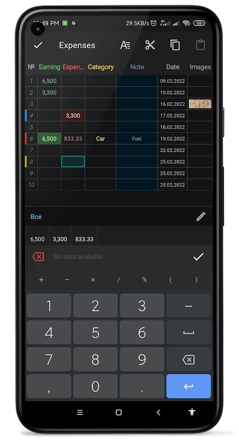 Учётные таблицы -Для того, чтобы не запоминать слишком большой объем информации — существуют специальные таблицы. Создайте несколько таких таблиц и ведите их так, как вам нужно. Добавляйте заметки, пишите четкие планы для выполнения, прописывайте каждый час своего дня и используйте для отображения всех моментов любые форматы в ячейках: текст, изображение, число, дата, переключатель, контакт. Таблицы поддерживают многие функции, включая автозаполнение, решение математических уравнений, ввод шаблонных данных и прочее.