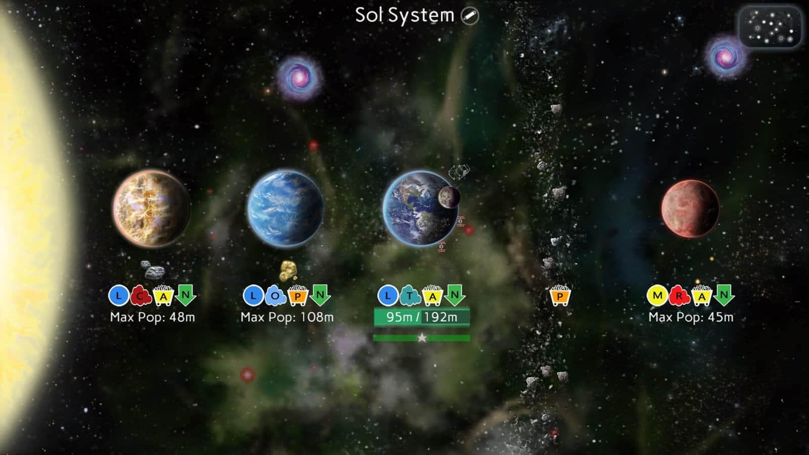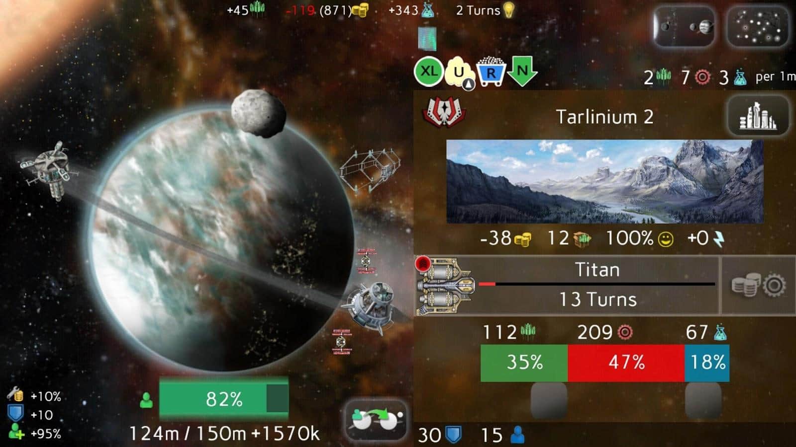 Что бы было более понятно. Игра рассчитана на долгие часы вдумчивого нажатия на кнопку следующего хода, потому что здесь все происходит довольно медленно. Самый большой прирост населения 2 млн в ход, для планеты с лимитов в 200млн на это понадобиться 100 ходов. А лимиты могут достигать и 370 млн. К слову, каждая планета имеет свою уникальную структуру. Размер, климат, гравитацию, ресурсы и уникальные ресурсы. Климат и гравитацию можно изменить в поздней игре, когда откроете соответствующие технологии. 1 млн насления может производить 1 из 3ёх ресурсов, пищу, производство, науку. Проценты населения распределяются автоматически по умолчанию, но вы можете менять по приоритетам. Допустим на планете, где на 1 млн можно производить 1 ед пищи и 7 ед производства, имеет смысл максимально сбавить процент, стоящий на пище в пользу производства.