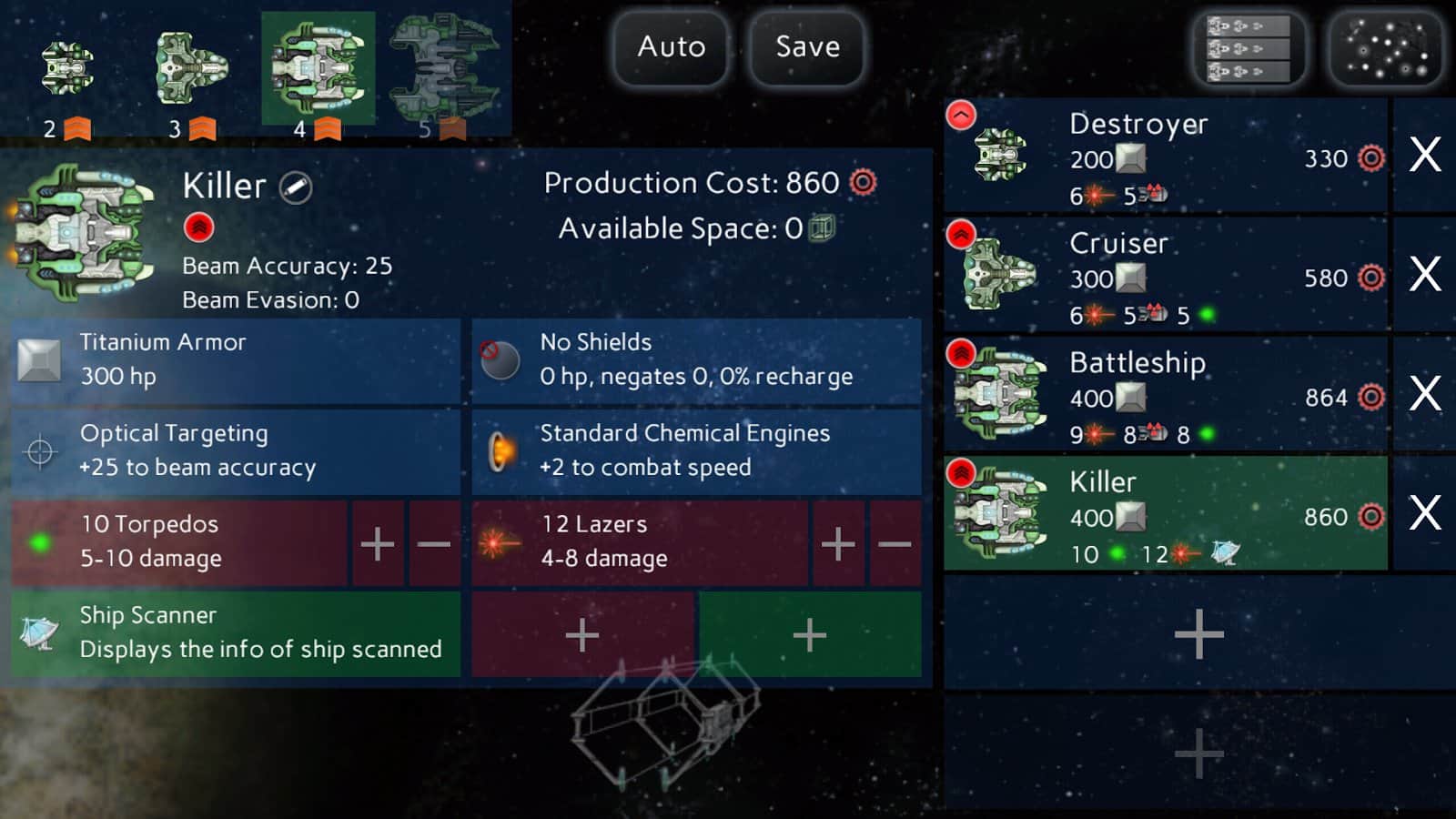 В начале игры лазеры слабы из-за низкой точности, но уже в средней игре вам не будет равных. А от зарядов и торпед можно уклоняться! Достаточно отлететь подальше и спрятаться за крупный астероид, если он есть, торпеда или харяд просто взорвутся о него.