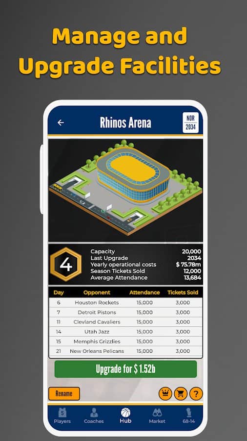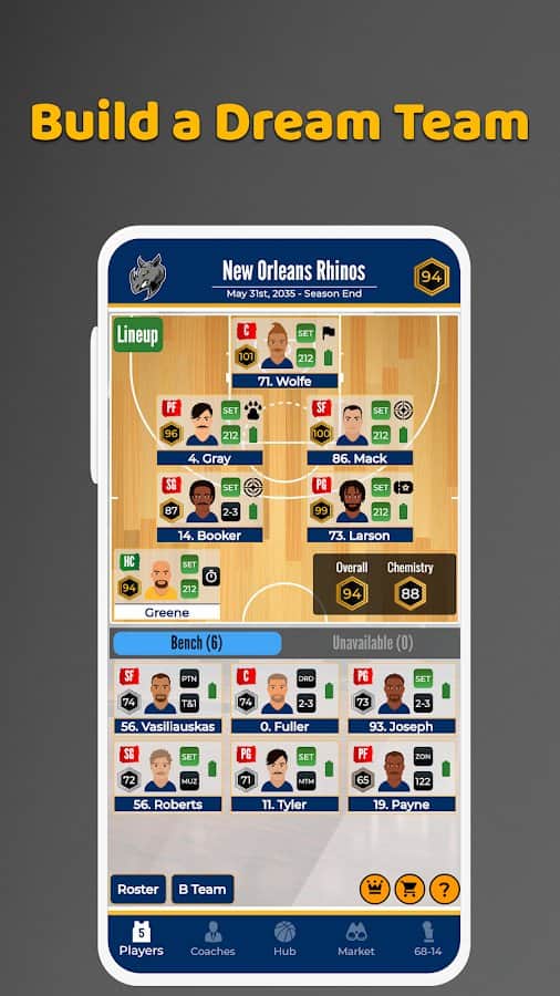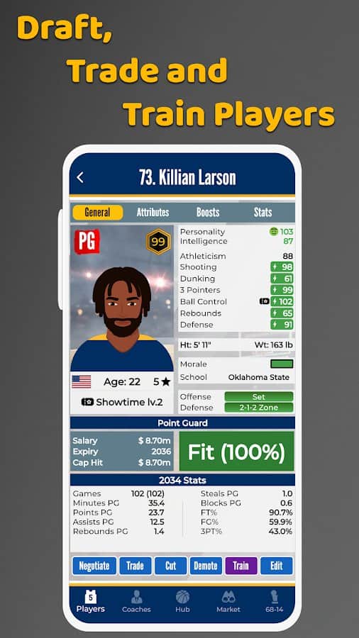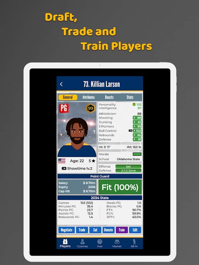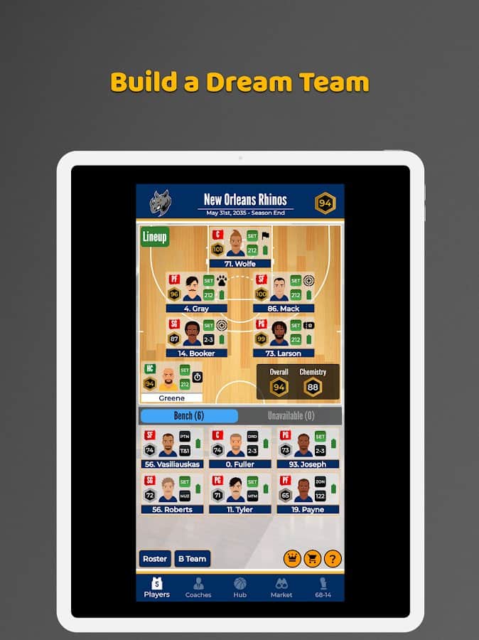Станьте тренером по игра с баскетбола и значительно облегчите жизнь своей команде! Развивайте дальнейший потенциал и тренируйте команду, находите новые решения для ее проблем, наблюдайте над работой участниками и наставляйте всех на правильные пути. Улучшите здания, выигрывайте поединки за большинство кубков, сражайтесь с лучшими игроками в игре, выбирайте хорошую команду и обгоните всех в рейтинге. Копите деньги на большие покупки, играйте с популярными звездами, заключайте выгодные сделки и наслаждайтесь!