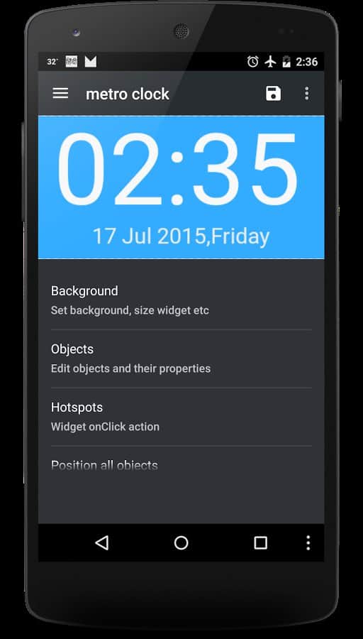 Ultimate Custom Clock Widget (UCCW) – шикарный конструктор для андроид устройств от разработчиков VasuDev, с целой кучей уникальных возможностей для изменения вашего рабочего стола под себя. Скачиваем, устанавливаем на свой андроид-смартфон и получаем виджет часов с гибкой настройкой через визуальный редактор WYSIWYG. Вам доступны: фон, шрифт, положение элементов, цвет и многое другое. Приложение отображает дату, заряд батареи, время, дни недели, количество пропущенных вызовов и смс, ну, и конечно же погоду.