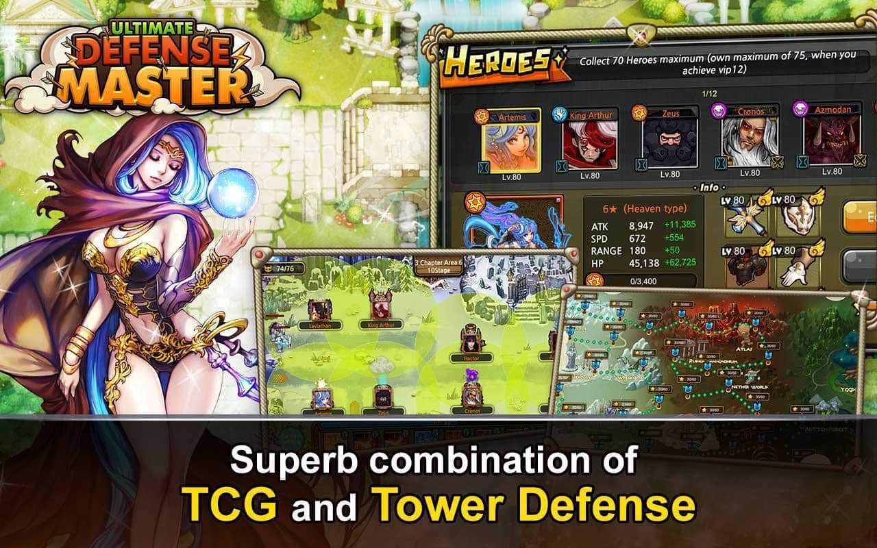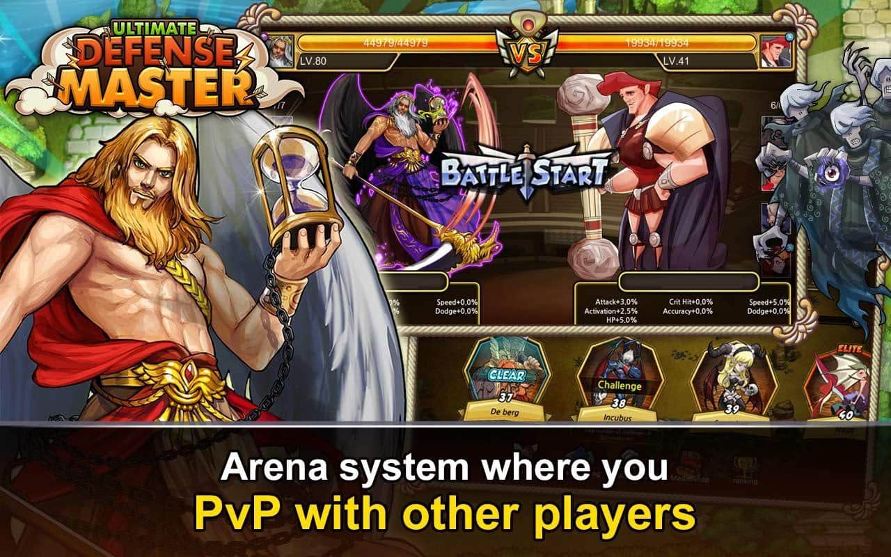 ULTIMATE DEFENSE MASTER – соберите свою непобедимую армию в этой стратегии на андроид, и дайте отпор всем силам зла. В этой игре вашей задачей будет собрать армию воинов, состоящую из сильных богов и легендарных героев и дать отпор врагам. Стройте защитные сооружения, возводите высокие стены и расставляйте башни, чтобы защититься от врагов. В вашем распоряжении будет более восьми видов башен и 4 элемента для защиты от врага. По мере прохождения игры улучшайте своих героев, наделяя их новыми умениями и магическими способностями. Вступайте в схватки с сильными боссами и побеждайте их, получая ценное вознаграждение. Создавайте непобедимые гильдии со своими друзьями и сражайтесь на арене.