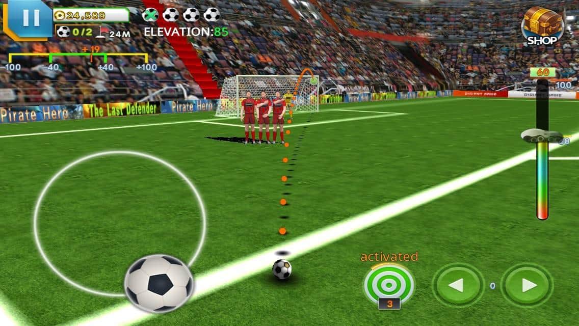 Ultimate Freekick - Любите забивать голы? Тогда эта игра на андроид именно для вас! Вам предстоит решать спортивные головоломки на много численных уровнях. Вся идея игры состоит в том, чтобы вы забили мяч с определенного места, но вам будет мешать «стенка». Поэтому хорошо прицеливайтесь и не спешите. По ходу прохождения уровни в игре станут гораздо тяжелее.