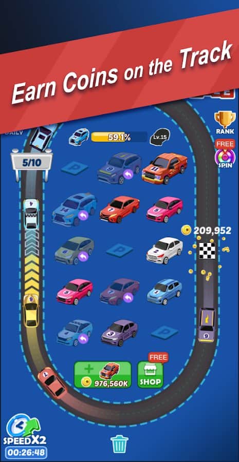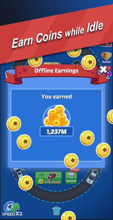 Ultimate Merge Cars: Idle Driving & Racing Tycoon - Добро пожаловать, в ваш собственный гоночный трек, сделайте его самым лучшим среди всех треков в мире! Создавайте свои коллекции спортивных автомобилей, объединяйтесь с другими игроками и зарабатывайте деньги создавая самые лучшие и востребованные трассы. Если у вас есть два автомобиля одного уровня, просто объедение их вместе и получите машину лучшего уровня. Вы можете разблокировать более 50 авто, бросайте их на разные мини-трассы и зарабатывайте ещё больше денег. Ежедневно выигрывайте деньги в колесе фортуны, получайте ускорения, выведите свою трассу на первое место в списке лидеров.