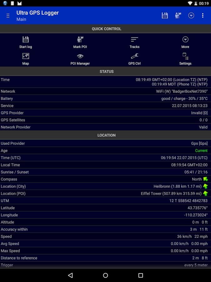 Ultra GPS Logger - Великолепный навигатор который категорически отличается от всего что вы видели до этого. В отличии от стандартных навигаторов, это приложение имеет весьма расширенный функционал. Одной из основных функция является то что оно может отслеживать ваш маршрут в реальном времени, куда бы вы не пошли вы сможете составить целую хронологию похода, указав на вашем маршруте точки остановок и многое другое. Так же здесь есть множество других забавных функций с которыми вы можете ознакомится сами.