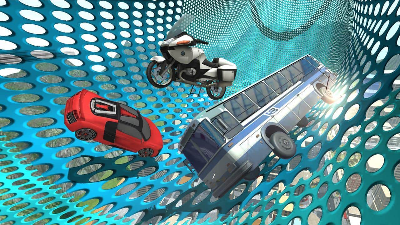 Ultra Ramp Extreme Stunts – управляйте автомобилем и гоняйте по различным опасным трассам игры. В этой игре вы сядете за руль грузовика или спортивного автомобиля и будете проделывать невероятные трюки и проходить сложные испытания. Давите на педаль газа до упора и неситесь вперед по извилистому туннелю, преодолевайте опасные склоны и падайте с большой высоты. Проделывайте трюки в воздухе и получайте за них дополнительные очки. Пролетайте на своем автомобиле над городом и проделывайте сальто. Покажите все на что вы способны в этой игре и приготовьтесь к сложным испытаниям. Открывайте для себя новые виды машин и наблюдайте за своим автомобилем из разных камер.