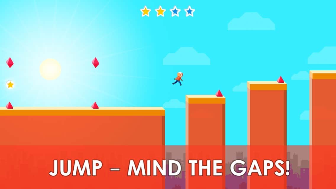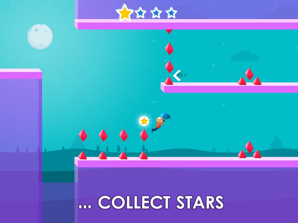 Umbrella Jump – таймкиллер на андроид, где вам предстоит управлять бегающим героем с зонтиком. Эта игра порадует вас разнообразными уровнями с многочисленными препятствиями, которые вам предстоит преодолевать. Бегайте, прыгайте и применяйте зонтик, чтобы парить с крыши на крышу и обходить острые шипы, при соприкосновении с которыми вы отправитесь в начало игры. Соберите по четыре звезды на каждом уровне и попробуйте разблокировать нового персонажа. Попробуйте дойти до конца игры и поставить свой рекорд по скорости и времени прохождения игры. Перемещайтесь по различным красочным уровням и собирайте как можно больше бонусов.