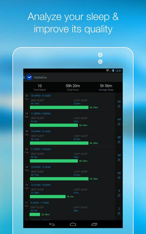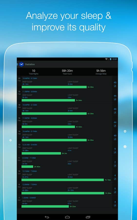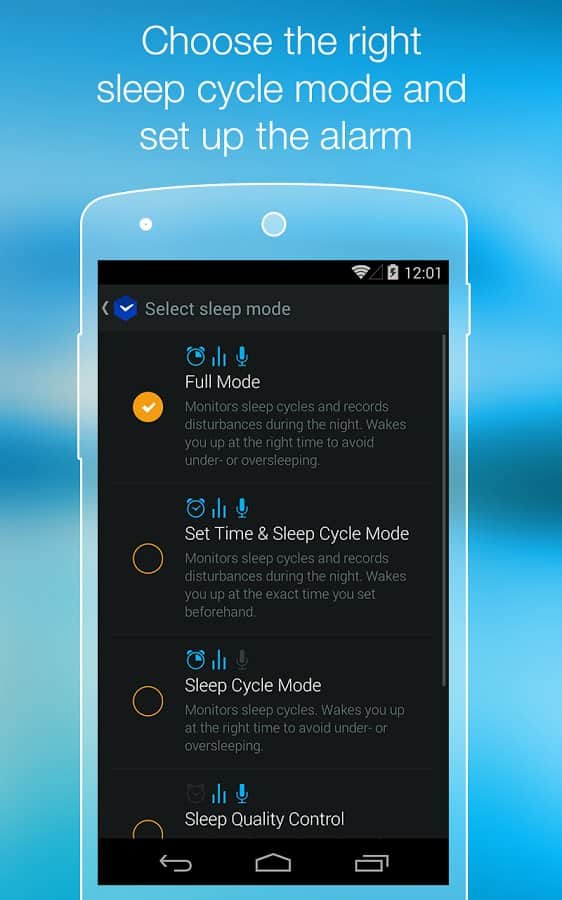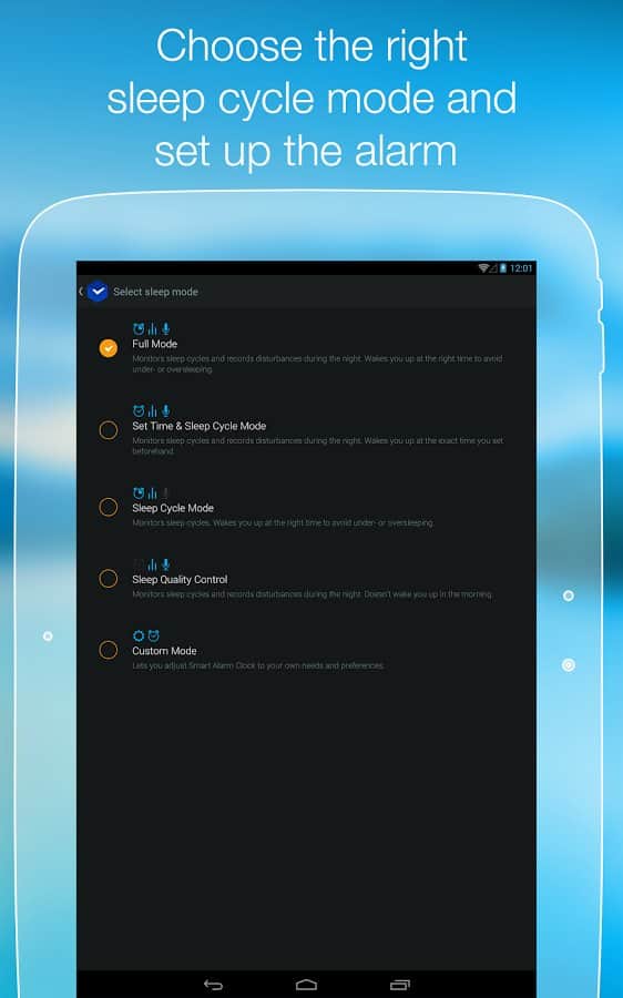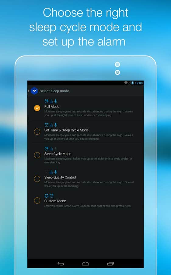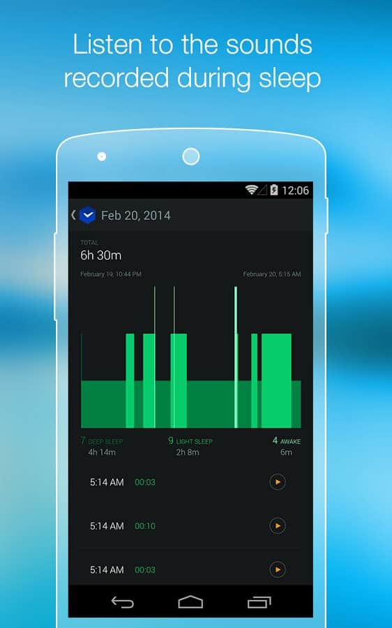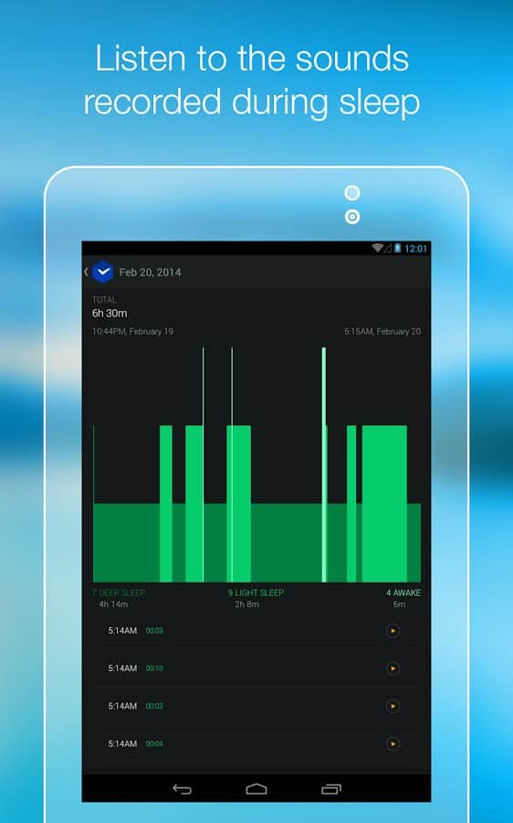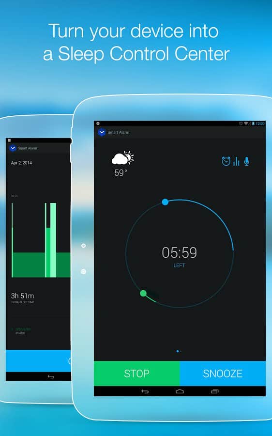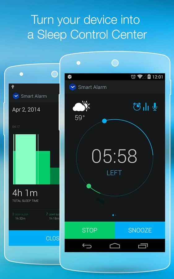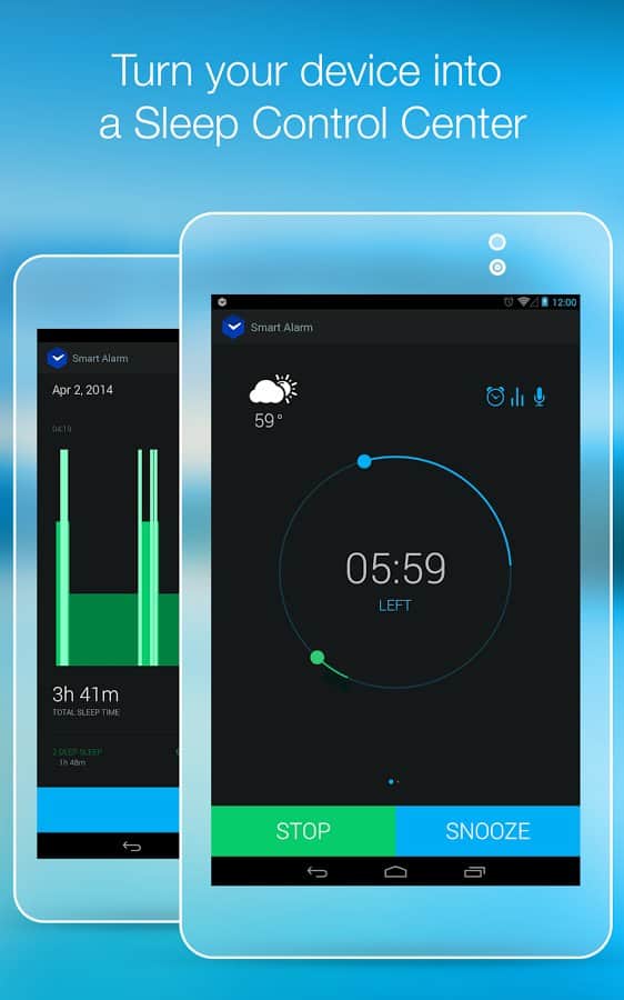 Smart Alarm Clock – замечательный будильник для андроид устройств. Умный будильник, знает когда вам необходимо проснуться, для того чтобы чувствовать себя весь день в отличной форме и хорошем настроении. Вся изюминка данного приложения состоит в анализе фаз вашего сна. Как это работает: датчики находящиеся в вашем устройстве фиксируют все звуки и движения во время сна, а алгоритм приложения, в свою очередь, проводит анализ полученной информации и определяет каждую фазу сна. При наступлении фазы сна для наилучшего пробуждения - срабатывает будильник. Приятных снов и легкого пробуждения!