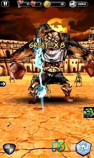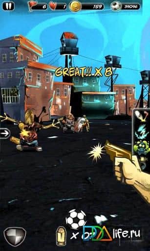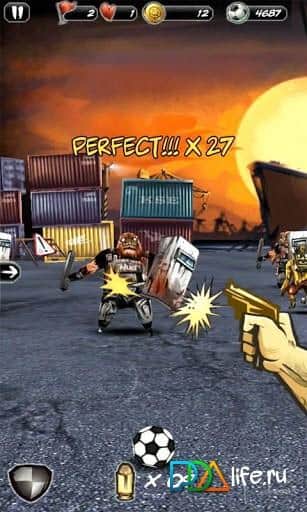 Undead Soccer - это своеобразный футбол для андроид. На самом деле речь пойдет больше об экшене. У вас есть мяч и крышка от мусорного бака. Как вы уже поняли, мяч - это оружие, а крышка - это защита. Вам надо мячом отбивать быстро движущихся на вас монстров, а в случае опасности - обороняться крышкой. Вам доступно: