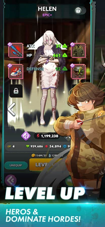 Undead World: Hero Survival - Ходячие мертвецы начали мутировать, не дайте им возможности еще больше захватить мир и полностью уничтожить выжившее человечество! Разблокируйте и познакомьтесь с сильными, умными, бесстрашными и разными персонажами, они будут сопровождать вас всю игру. Только вы решаете, какой бой будет сегодня: без или с вашим участием. Продержитесь живым как можно больше, при этом ежедневно собирая полезные предметы, изготавливая оружие для сражений, поддерживая команду для дальнейшего существования и прочее.