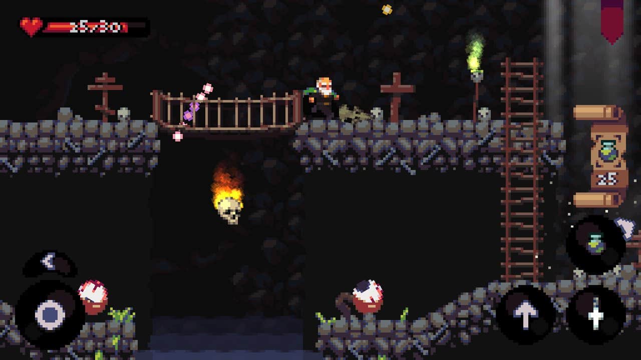 Undergrave – платформер на андроид, с элементами рогалика. В этой игре вы будете управлять героем, который владеет знаниями об алхимии и может применять различные зелья. Проведите своего героя по многочисленным уровням игры, которые не дадут вам скучать и будут уникальны. На вашем пути встретиться большое количество демонов, которых вам предстоит уничтожать, используя заклинания и зелья. Для того чтобы приготовить зелье вам необходимы все ингредиенты которые находятся в сундуках или в уничтоженных врагах. Путешествуйте по опасному миру и найдите все нужные вам ингредиенты. Вступайте в схватки с сильными боссами и победите их любыми путями.
