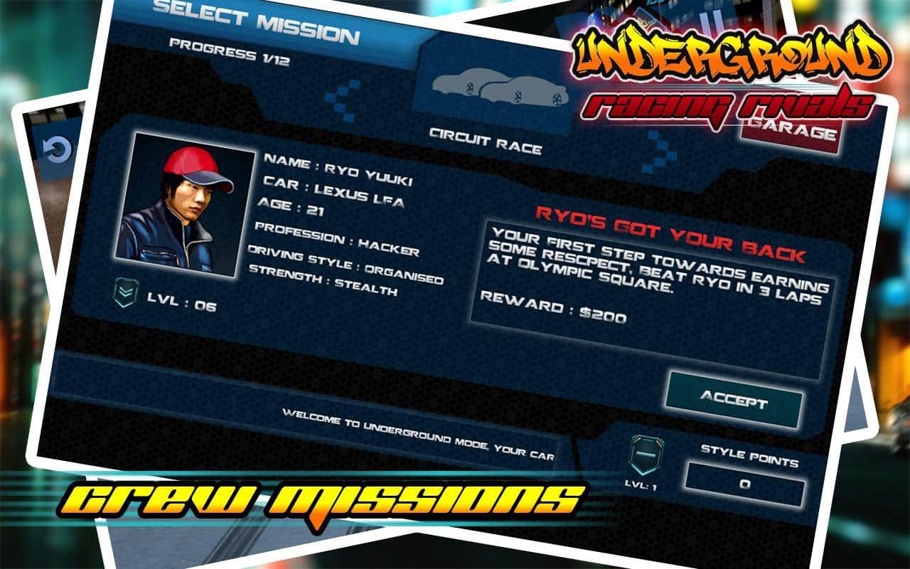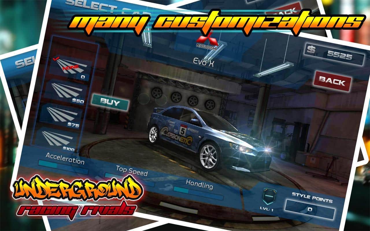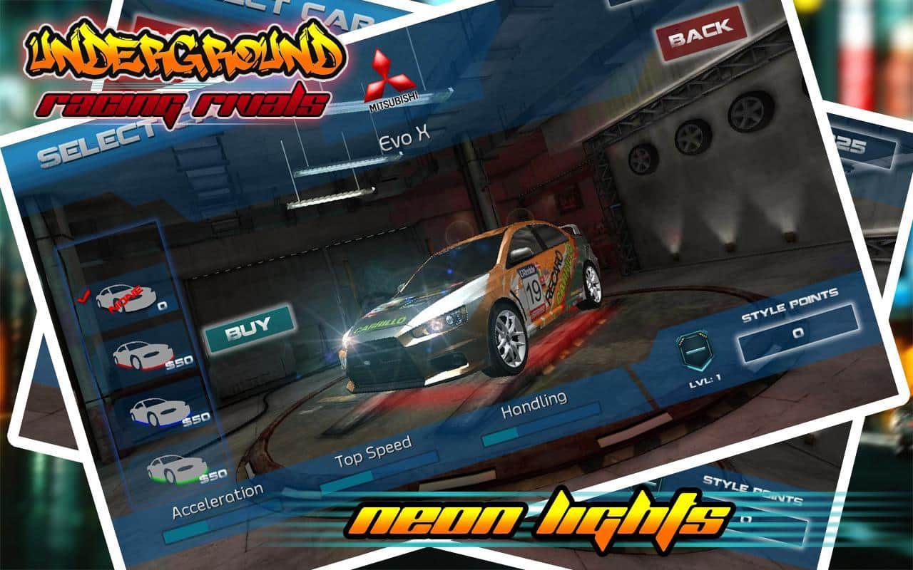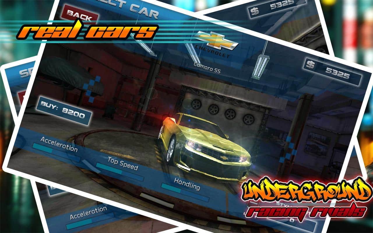 Underground Racing Rivals – бросьте вызов самым отважным гонщикам в этой игре и попробуйте прийти в финишу первым. Выберите подходящий вам автомобиль и гоняйте по оживленным трассам на огромной скорости обгоняя всех соперников. Прейдя к финишу первым вы заработаете деньги, накопив их достаточное количество вы сможет отправиться в магазин и приобрести новые обновления для авто или купить новый мощный автомобиль. Игра порадует вас реалистичными звуками мотора, отличным управлением и невероятным дрейфом на поворотах.