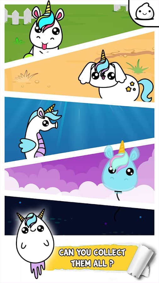 Unicorn Evolution - Idle Cute Clicker Game Kawaii – красочный кликер на андроид, где вы будете наблюдать за эволюцией единорогов. Объединяйте между собой двух единорогов и наблюдайте как они меняются и обретают новые формы. Исследуйте реальный и увлекательный мир игры и добивайтесь отличных результатов. Объединяйте между собой единорогов и получайте монетки чтобы купить больше единорогов.