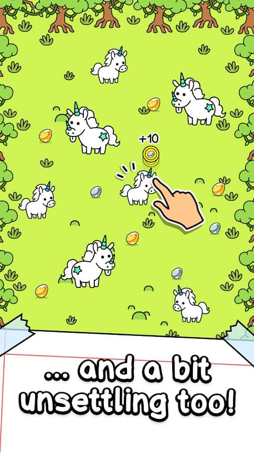 Unicorn Evolution - Fairy Tale Horse Game – увлекательная игра на андроид, где вы будете эволюционировать единорогов. Наличие огромного рога на голове единорога теперь не показатели и эти сказочные животные решили принять участие в эволюции и открыть для себя новые виды и формы. Соединяйте одинаковых единорогов воедино и получайте новых загадочных существ. Используйте яйца единорогов, чтобы открывать новые виды и получать больше монет. Кликайте как можно чаще на единорога и таким образом добывайте яйца. Играйте в эту игру и наслаждайтесь красочной графикой и разнообразными видами единорогов.