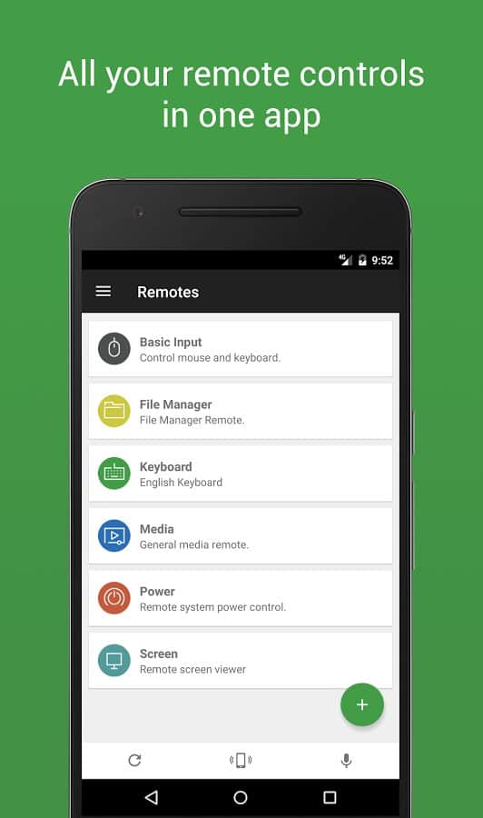 Unified Remote Full - Сделайте из вашего смартфона настоящий пульт управления для вашего ПК. Все что вам для этого нужно, это установить это приложение на смартфон, а так же серверную часть на ПК, связать их вместе и вуаля! Теперь вы можете удаленно управлять своим ПК при помощи смартфона, используя для этого Wi-fi.