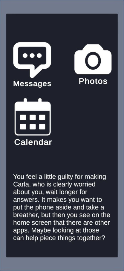 Unlocked — короткое, но пронзительное нарративное приключение, где вся история спрятана внутри смартфона. Очнувшись в больнице после аварии, ты теряешь память и единственная нить к прошлому — твой телефон. Открывай приложения, читай сообщения, листай фотографии и календарь, шаг за шагом восстанавливая собственную жизнь. Реалистичный интерфейс, тревожная атмосфера и тонкая подача сюжета превращают привычные действия в эмоциональное расследование, где правда оказывается куда сложнее, чем кажется на экране.