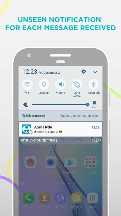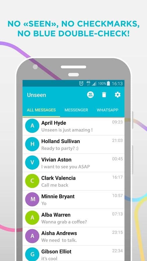 Unseen - No Last Seen - Бывают случаи, когда вы знаете, что не сможете моментально ответить собеседнику, но все равно хотите сразу же посмотреть, что именно он вам написал. Благодаря Unseen вы можете читать сообщения в мессенджерах, оставаясь невидимым для собеседников. Им не будет приходить уведомление о том, что послание прочитано, а значит они не будут и переживать из-за того, что долго ждут ответных реплик. Приложение работает с такими популярными соцсетями как VK и Инстаграм, а также с несколькими различными мессенджерами (Вайбер, Телеграм и тд.). Вы сможете не только незаметно читать текстовые сообщения, но также прослушивать аудиофайлы и смотреть видеоролики.
