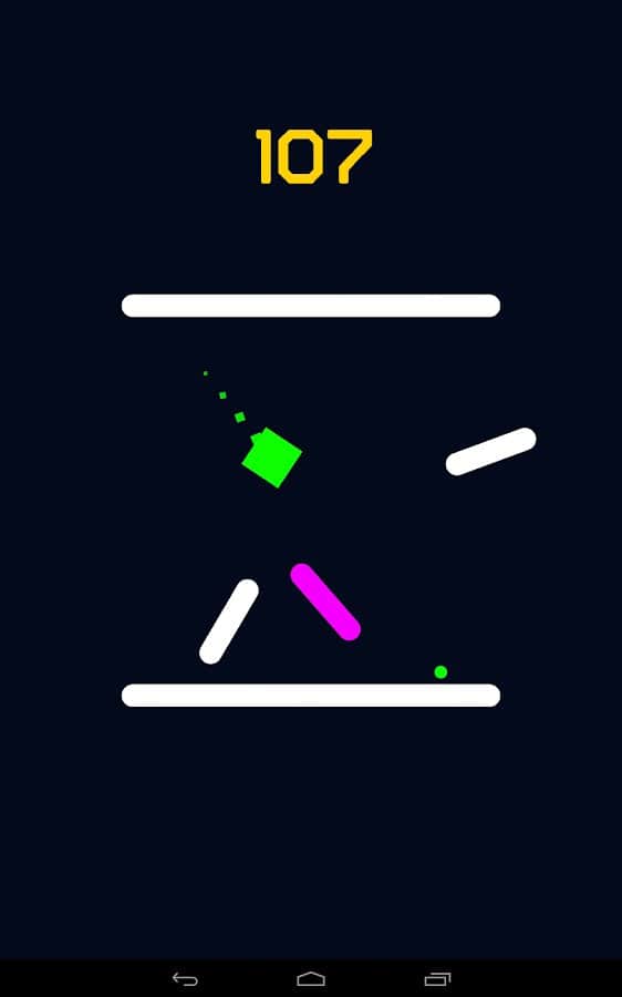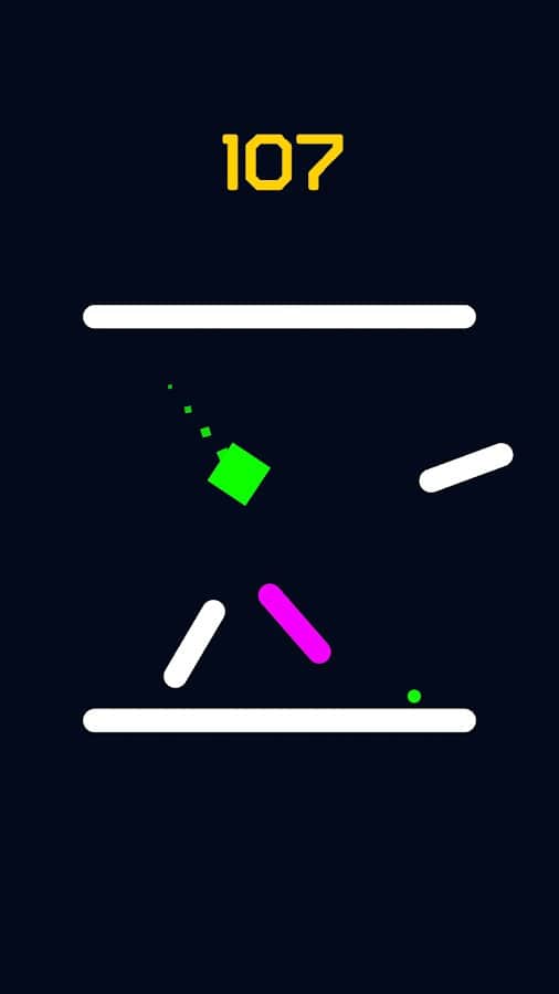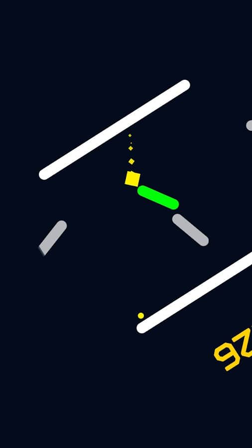 Уворачивайтесь от скоростных летящих на вас белых и золотых палок, собирая светящиеся мячики разных цветов и стараясь перейти на уровень, где действия на карте происходят быстрее! В Up N Dash у вас нет права на единую ошибку, поэтому нажимайте на экран много раз и перемещайтесь к стенкам, чтоб отбиваться со стороны в сторону. Разблокируйте разные скины или цветовую палитру, ставьте рекорды и наблюдайте за друзьями, которые пытаются его побить. Со временем игра затягивает и скучно точно не будет!