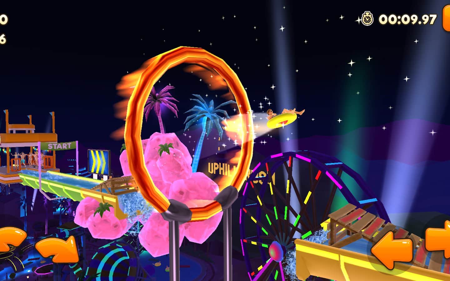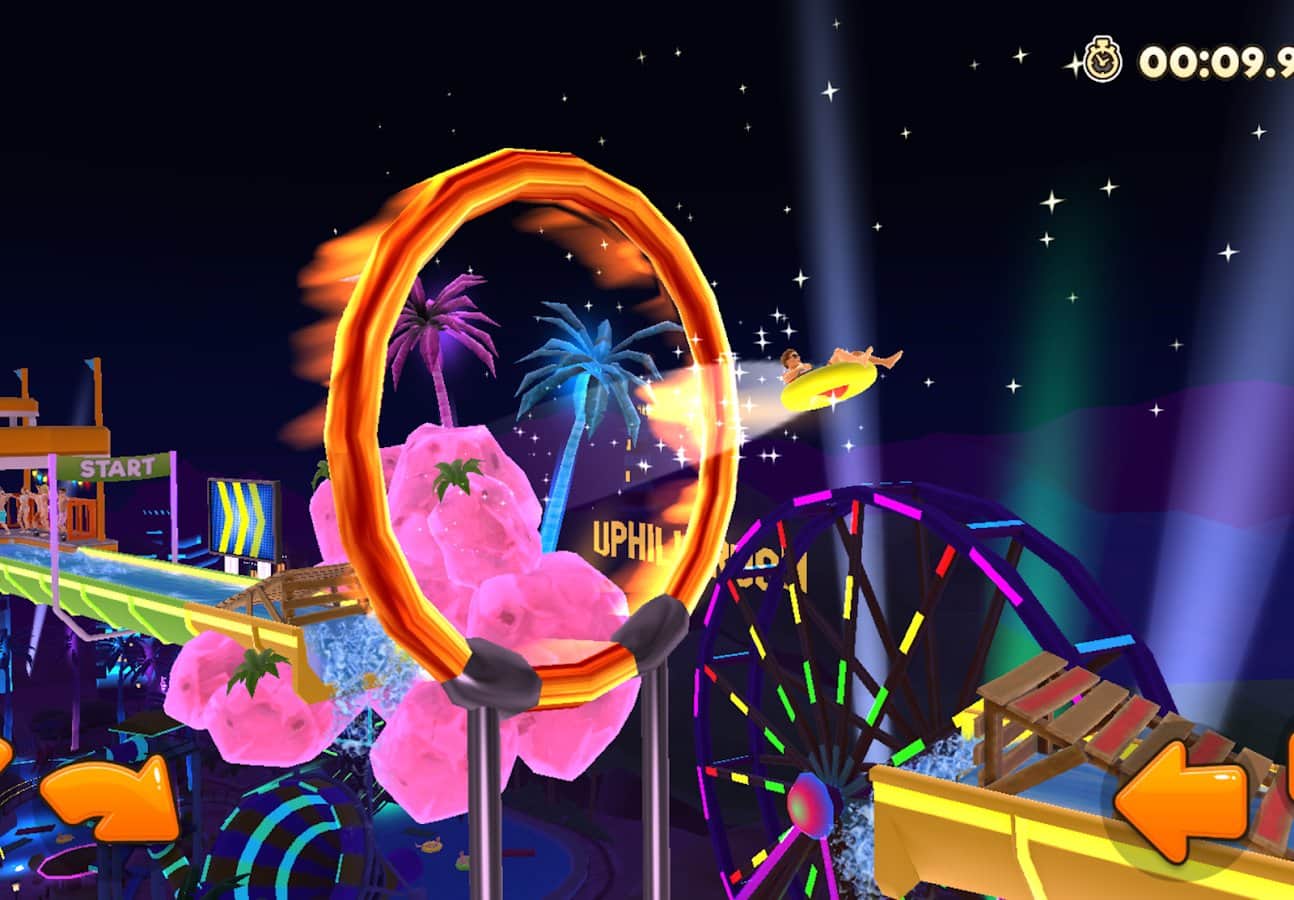 Uphill Rush – возьмите под свой контроль героев этой игры, которые будут кататься на водных горках в аквапарках. Выбирайте себе героя из многочисленных представленных в этой игре и начинайте спуск. Проделывайте невероятные трюки и старайтесь добраться до финиша за минимальный промежуток времени. В этой игре вас ждут экстремальные испытания, головокружительные трюки и разнообразные транспортные средства которые вы должны проверить в действии. Открывайте для себя новых персонажей и приобретайте для них разнообразные костюмы и аксессуары. С помощью редактора уровней создавайте свои уровни и испытайте в действии уровни своих друзей.