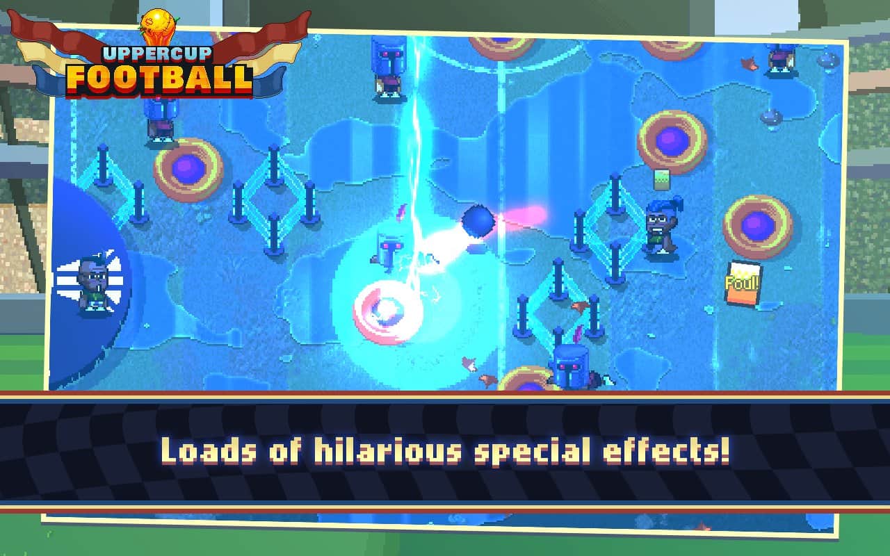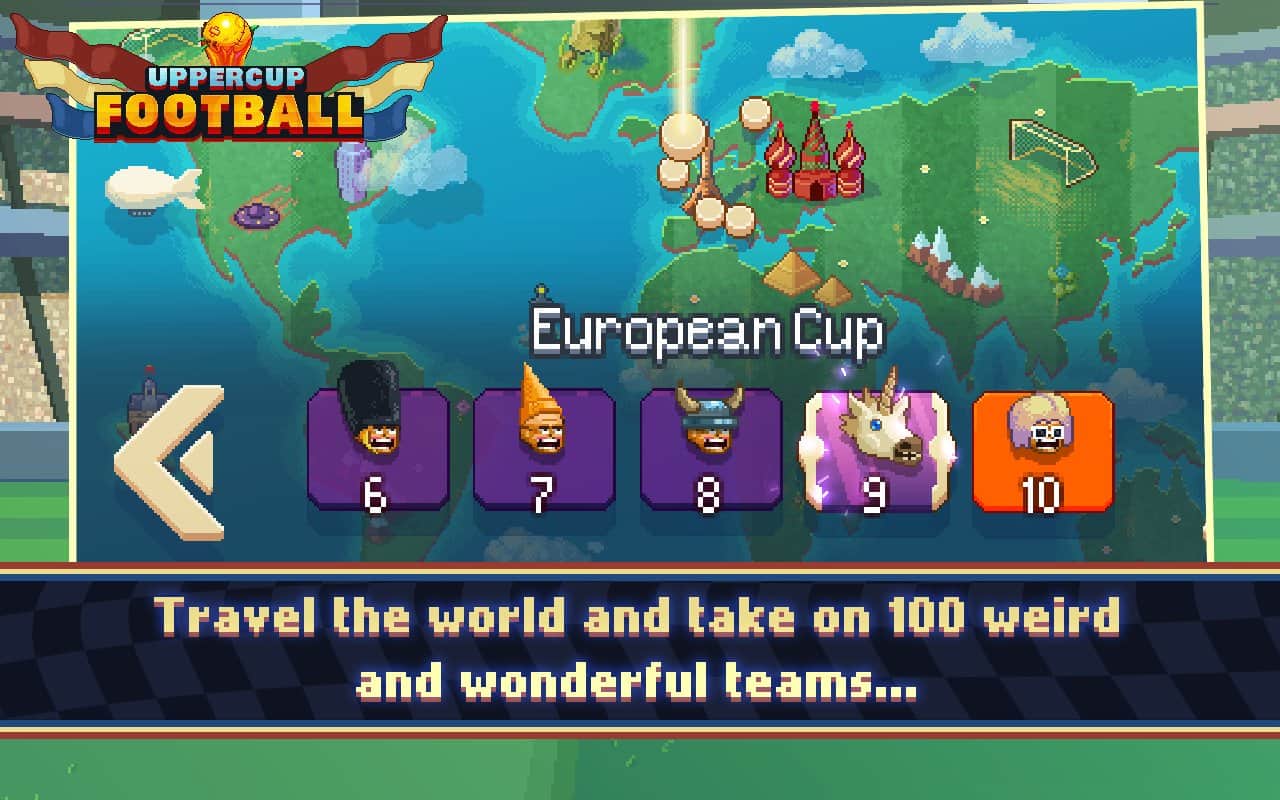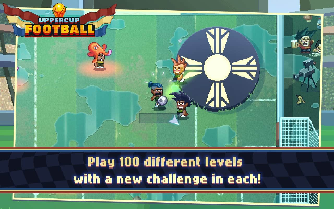 UpperCup Football - Веселый аркадный футбол на андроид, который впечатлил своей своеобразностью. Участвуйте в нестандартном турнире, где участвуют нестандартные элементы. На поле будут лежать и взрывные мины, или специальные фишки. В игре около ста увлекательных уровня для прохождения. Кроме того, вы можете играть не только обычными футбольными мячами, но и мячами с других видов спорта.