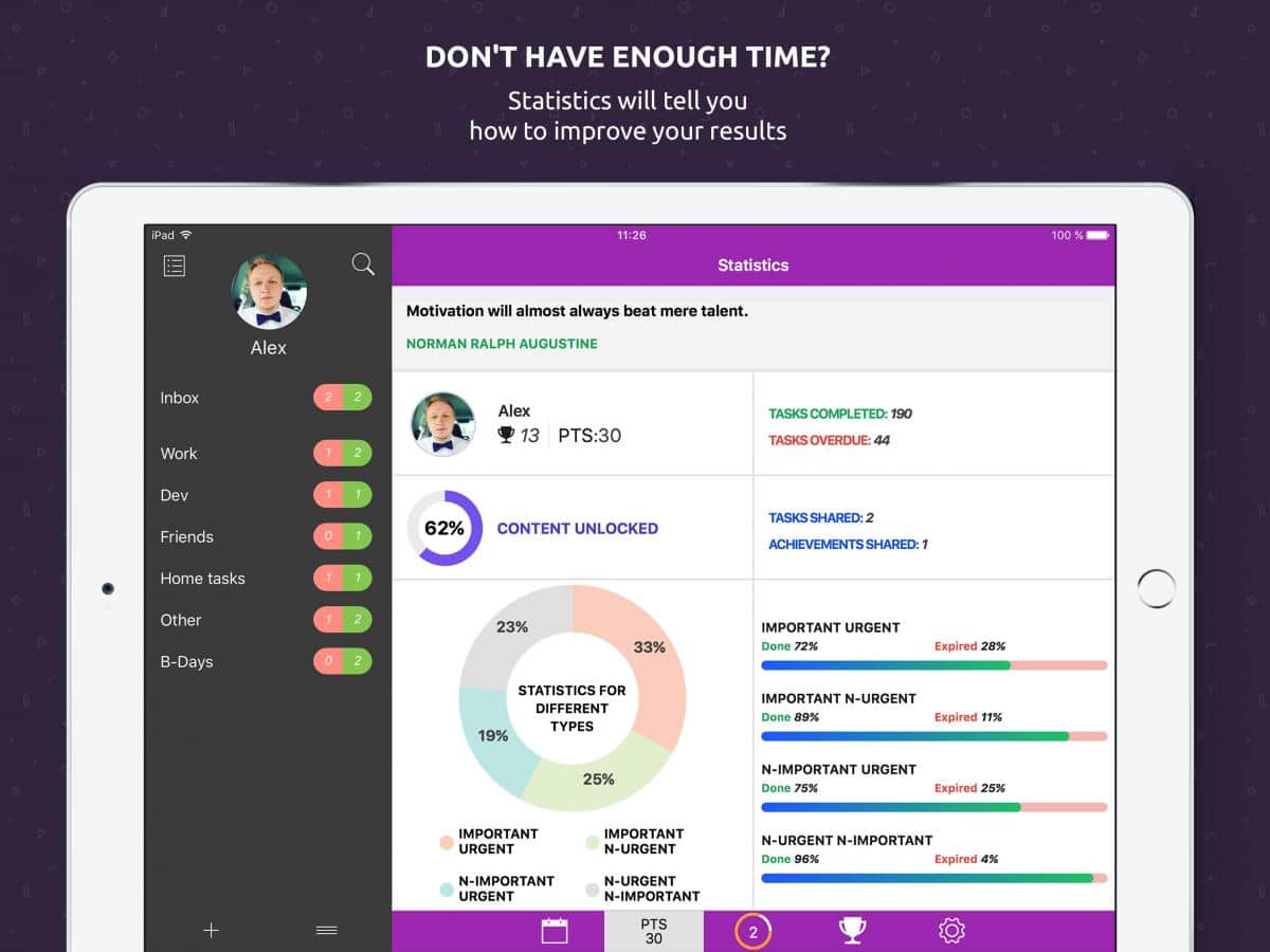 UpTask - Это новый подход к планированию заданий на день, неделю, месяц. Данное приложение кардинально отличается от своих аналогов, и одним из главных отличий является то что оно сделано в игровой форме. Вам нужно будет не только грамотно распределять своё время, но и вовремя выполнять все поставленные вами задачи, за это вы будете получать различные достижения и баллы, которые впоследствии можно будет посмотреть в статистике.