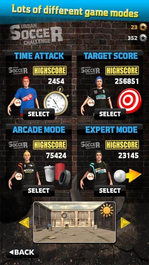 Urban Soccer Challenge – увлекательный городской футбол с многочисленными режимами игры и знаменитыми футболистами. Возьмите под свой контроль одного из известных футболистов таких как: Лионель Месси, Дэвид Бекхэм, Роберто Карлос, Эдгар Давидс и Криштиану и играйте в дворовой футбол, забивая мячи в баки. Выбирайте понравившийся режим игры из шести представленных в игре и играйте со своими друзьями в режиме мультиплеер. Игра порадует вас реалистичной графикой и физикой мяча. В игре также есть смена погодных условий и разнообразные локации. Играйте и забивайте как можно больше мячей в баки и поднимайтесь все выше в таблице лидеров и достижений.