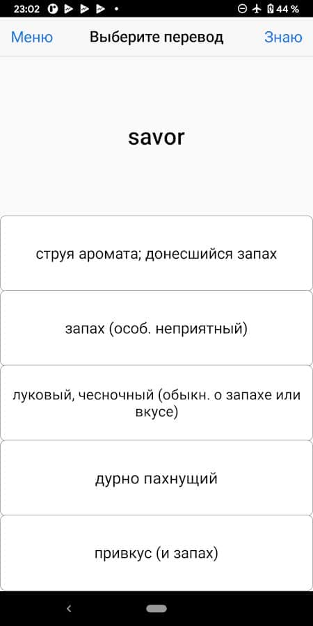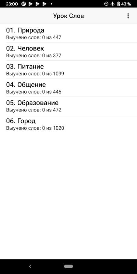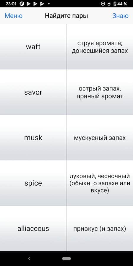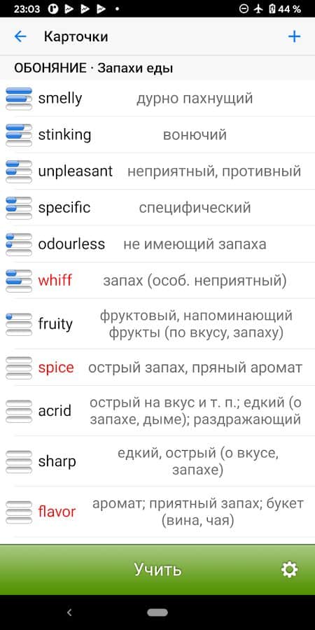 Учите новые слова интересным способом! Выберите категорию слов, группу, а затем приступайте к изучению с помощью карточек. Каждое слово будет написано английскими буквами с озвучкой, а ниже расположен перевод на русском и пример использования слова в предложении. После такого изучения у вас будет возможность попробовать другие способы запоминания: составление пар, выбор перевода из предложенных, задача вспомнить. Ознакомьтесь, запомните, потренируйтесь и закрепите, чтобы вспомнить слово через некоторое время.