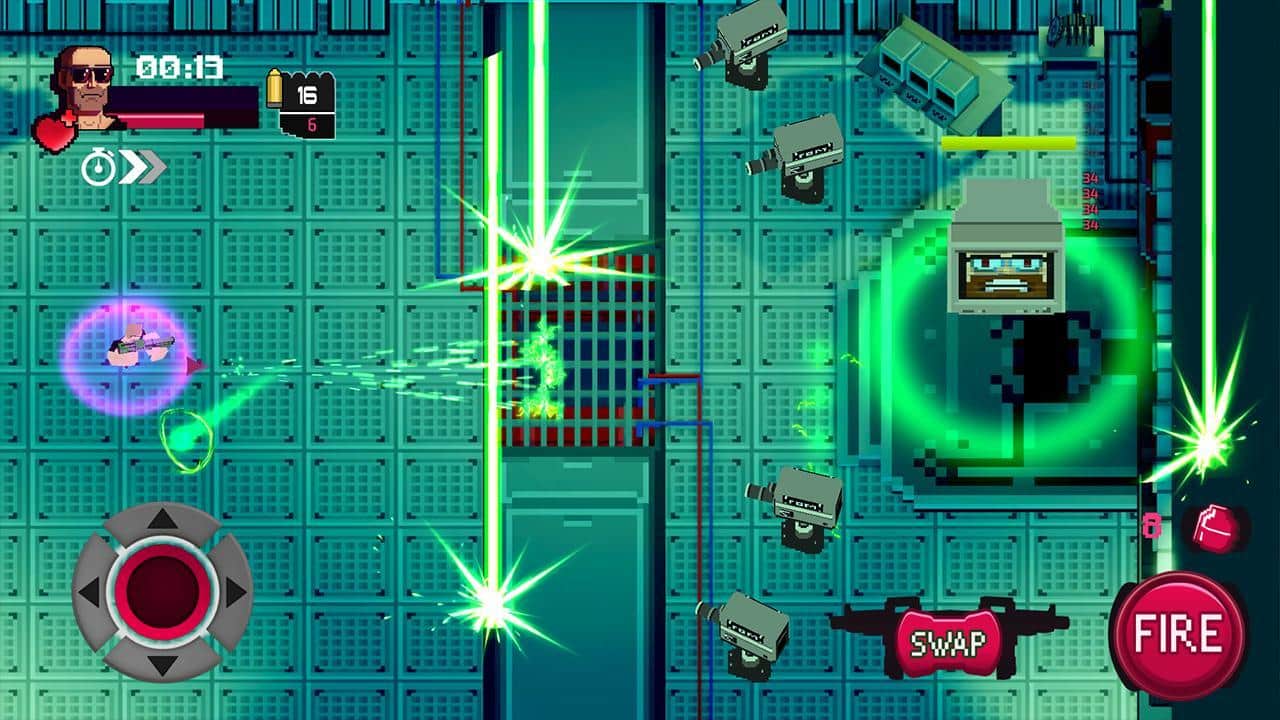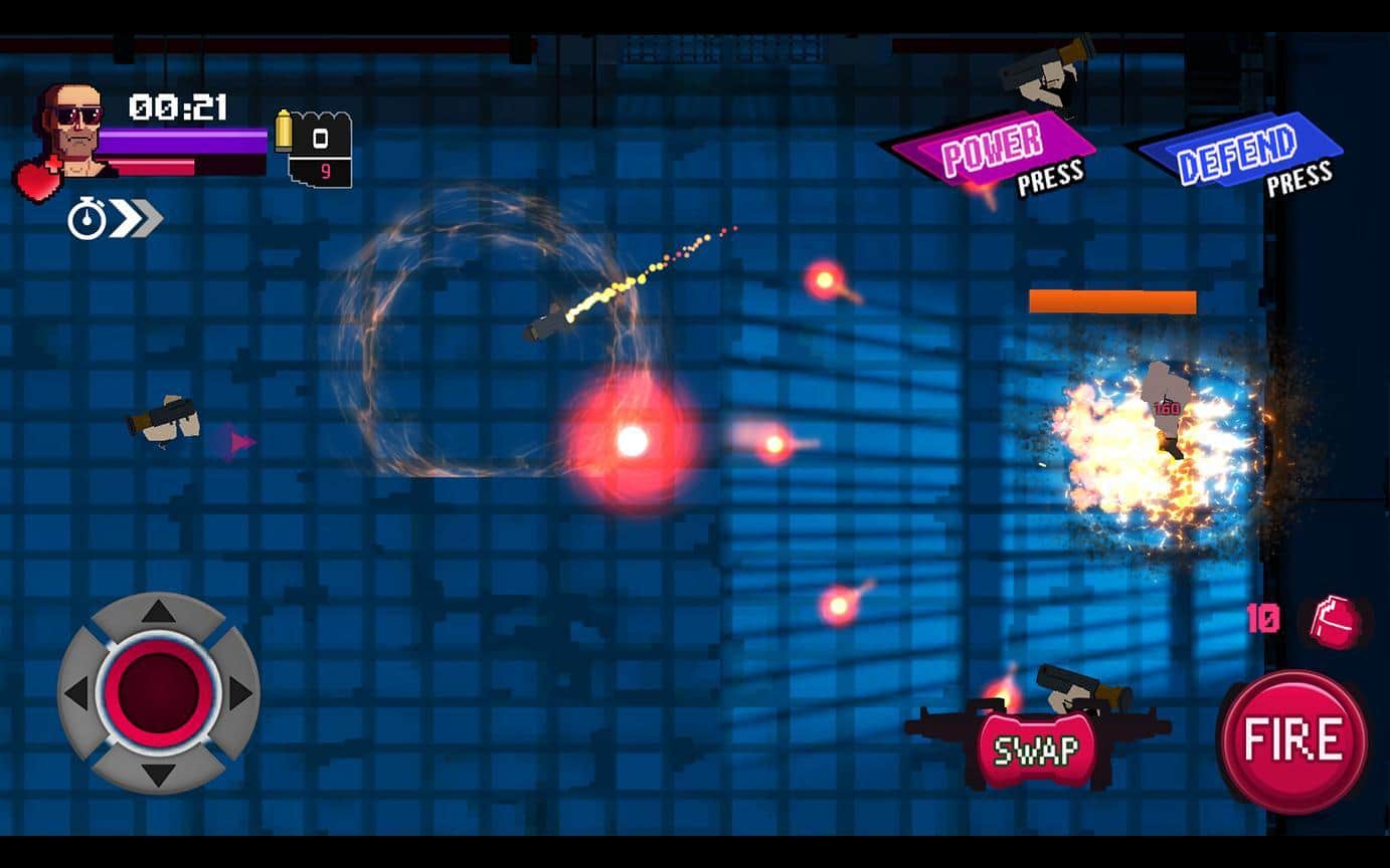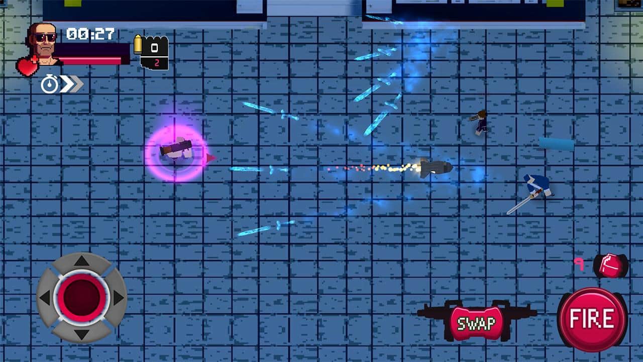 Vagrant Fury – шутер на андроид, сделанный в стиле 80-х и 90-х годов. В этой игре вы возьмете под свой контроль отважного героя и будете перемещаться по различным локациям, уничтожая злодеев-психопатов и устраивая взрывы. Уничтожайте многочисленных врагов поджидающих вас на каждом шагу и перемещайтесь по экрану, чтобы увернуться от огня ответных выстрелов. Играйте в эту игру в любое свободное время и весело проводите его, наслаждаясь динамичным саундтреком и пиксельной графикой.