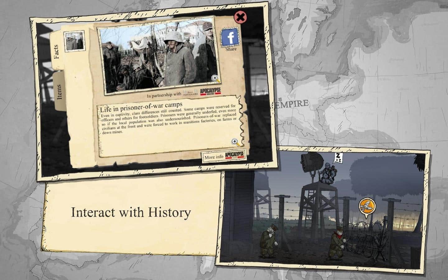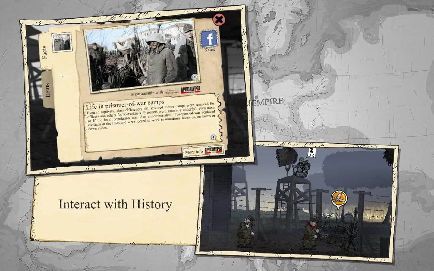 Valiant Hearts: The Great War – приключенческая игра с исключительным дизайном. Погрузитесь в страшную атмосферу Первой мировой войны! Помогите выжить своим героям в трудное время, решая головоломки и пробираясь среди окопов и траншей в тыл врага. Вашим верным помощником будет пес Уолт. Сюжет игры является вымышленным, однако вы сможете посетить несколько реальных известных мест и наблюдать за важными сражениями на Западном фронте.