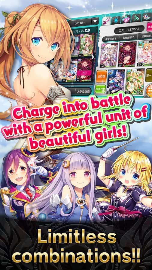 Valkyrie Crusade - вас ждет карточная РПГ. 200 удивительных карт и очень симпатичные девчонки откроют эпические сражения! Сражайтесь в дуэлях за священные сокровища, а быть может вам по душе схватка с врагами в каждой зоне в режим истории. Или же объединяйтесь с другими игроками для мощного разгрома опасных боссов. Впишите свое имя в таблицу лидеров и приведите своего героя к победе!