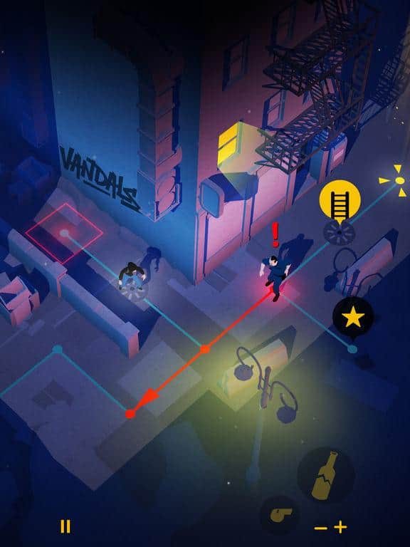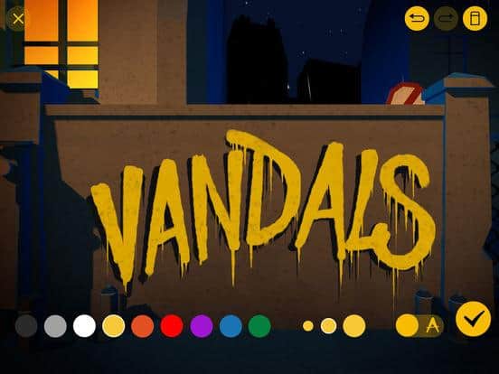 Vandals – игра для IOS в жанре стелс где вы будете играть за вандала который должен оставить на стенах свое граффити. В этой игре вы будете путешествовать по различным городам и странам и везде искать уловку для того чтобы оставить свою роспись. Продумывайте свой маршрут, обходя охранников и полицию с каждым новым уровнем сложность игры будет увеличиваться, добавляя собак и камеры наблюдения. Пройдите незамеченным до нужного вам объекта и обойдите всех охранников и преграды на своем пути. Впереди вас ждут пять различных городов, множество неповторимых уровня, стильная графика и простое и понятное управление.