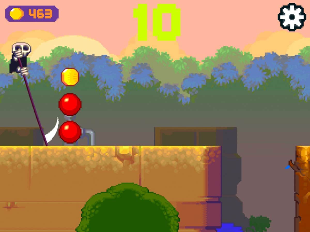Vault! - новый проект студии Nitrome, одного из лидеров по созданию аркад для мобильных платформ. И на этот раз разработчики решили не отступать от привычного жанра и подарили нам игру сочетающую в себе элементы ранера, джампера и платформера. Во многих играх от Nitrome встречаются элементы физики, что придает геймплею некую хардкорность и Vault! не исключение. И так, выбрав одного из персонажей вам предстоит отправиться в бесконечное путешествие по сложнейшим уровням, состоящих из скал, отвесов, пропастей, трамплинов и прочих препятствий. При этом перемещаться ваш герой будет не только бегом, но и совершая прыжки при помощи шеста. Вот здесь то вам придется подключить всю свою ловкость и сноровку, ведь от продолжительности тапа будет зависеть сила прыжка, а траектория в данном случае решает все. Стоит отметить и приятный ретро-стиль использованный в графическом решении игры.