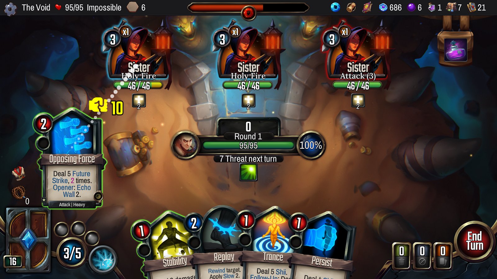 В мрачных коридорах пустоты каждый шаг связан с риском, но главное оружие игрока — умение планировать. Здесь нужно собирать колоду, пробовать разные комбинации карт и подстраиваться под неожиданные вызовы. Каждый бой строится на точных решениях и внимательности, ведь даже небольшая ошибка может обернуться поражением. Возможности для тактики огромные: можно менять стратегию прямо по ходу сражений, подбирать оптимальные ходы и находить новые способы одержать верх. Атмосфера игры держит в напряжении, но при этом оставляет простор для экспериментов и поиска собственных решений.