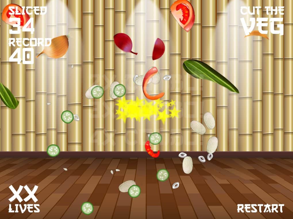 Veg ninja – нарезайте фрукты и овощи на мелкие кусочки, используя для этого свой меч. Динамичная игра на андроид, где вам предстоит превратить свой экран телефона или планшета в доску для нарезания овощей и фруктов. Берите свой меч и одним точным движением нарезайте на мелкие кусочки сочные плоды. Создайте нескончаемый фейерверк из кусочков фруктов и овощей и избегайте при этом различные ловушки в виде бомб. Игра подойдет для всех возрастов и понравится абсолютно всем. Играйте в эту игру в любое свободное время и наслаждайтесь приятной графикой и отличным музыкальным сопровождением.