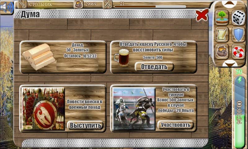 Великий Князь – симулятор на андроид, где вам предстоит стать Великим Князем в Древней Руси. Начните свой нелегкий путь и продвигайтесь все выше, набираясь опыта и призывая на свою сторону солдат и местных жителей. Соберите огромную армию, состоящую из пехоты, лучников, мечников и конницы и освободите свои земли от захватчиков и врагов. Проходите увлекательные миссии и пополняйте свою энергию, чтобы двигаться дальше и заниматься теми делами, которые вам нравятся. Сходите на охоту и в походы, налаживайте торговые отношения с другими государствами и собирайте отличный урожай. Устраивайте турниры и меряйтесь силами с рыцарями и воинами. Приручите своего питомца и станьте великим князем, добиваясь славы и признания у своего народа.