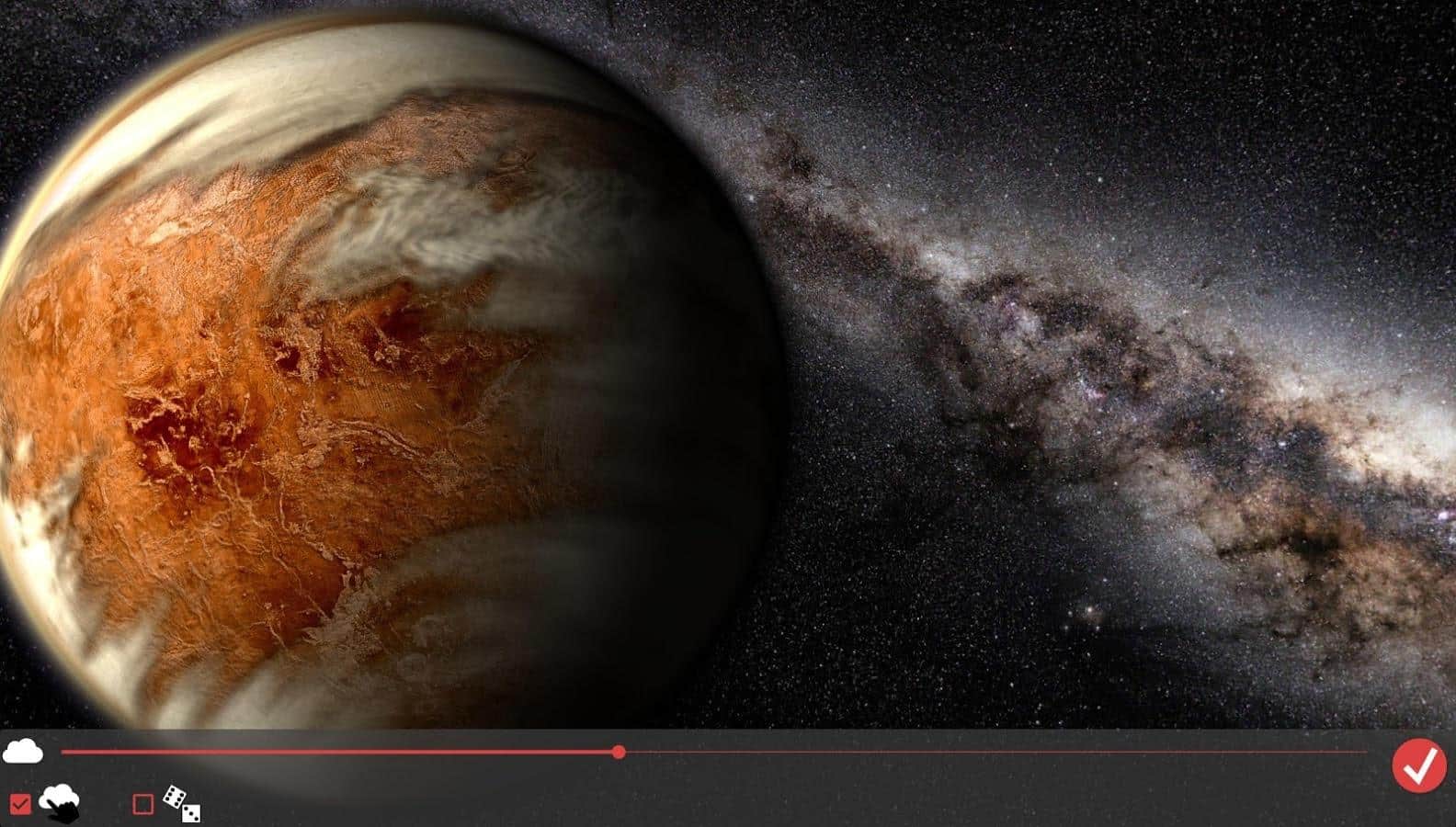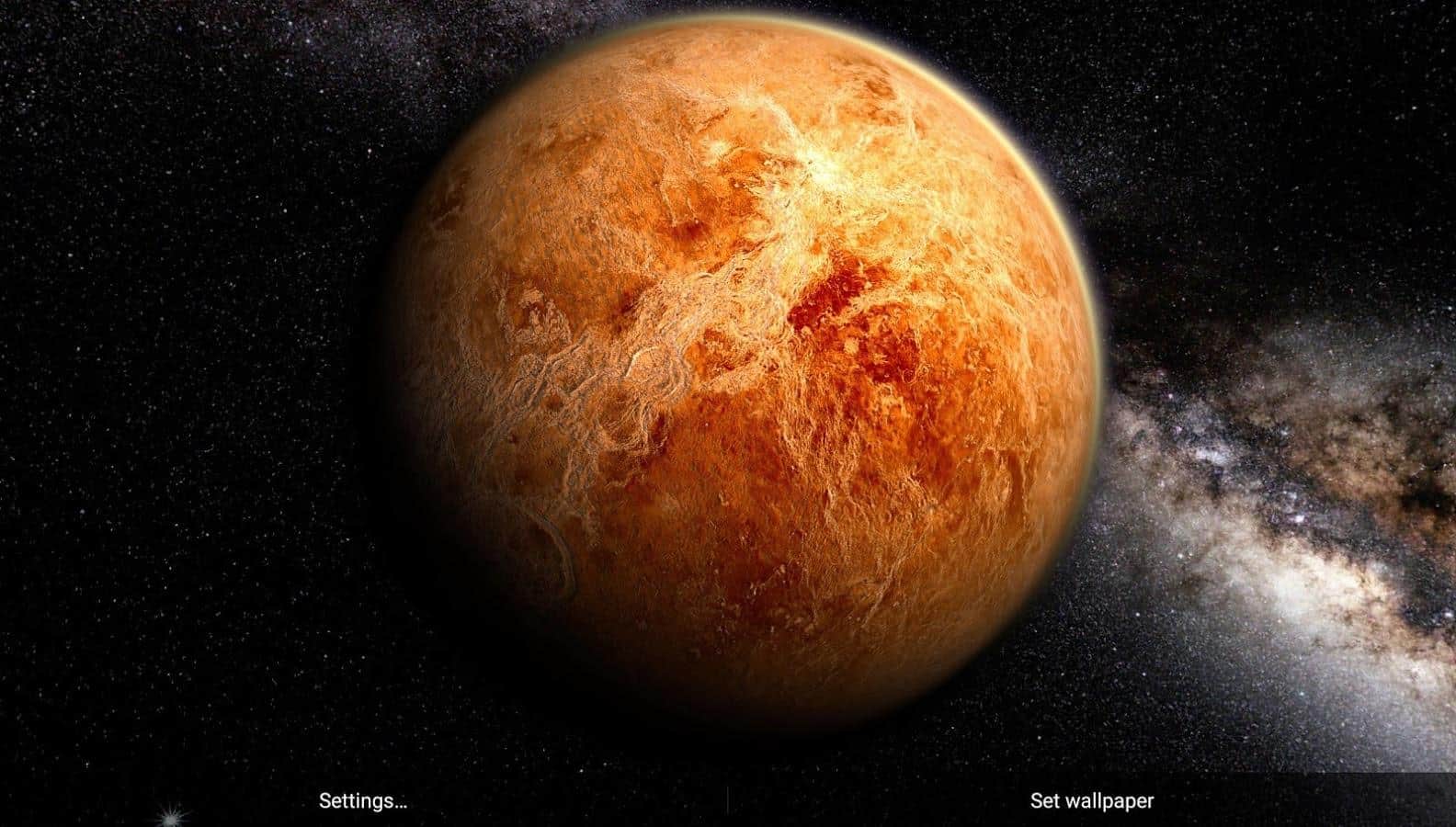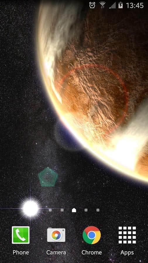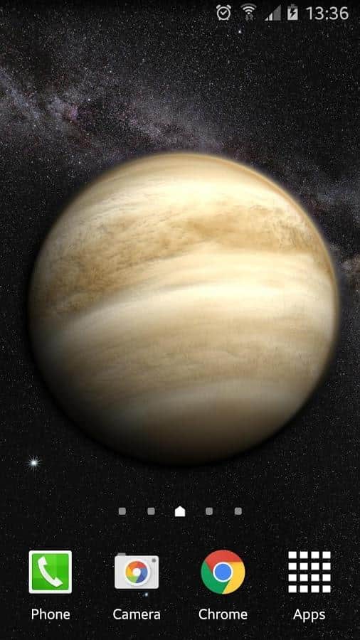 Venus in HD Gyro 3D XL - Удивительные живые обои, которые перенесут целый космос на экран вашего устройства. С помощью них, вы сможете наблюдать за Венерой, с любого ракурса, и даже сможете почитать информацию про эту планету. Перелистывая рабочий стол, вы будете поворачивать и саму планету. А если вам не нужна данная функция, вы можете просто отключить её в настройках. Так же, вы сможете выбрать один из пяти режимов камеры, или вовсе передвигать её вручную. А ещё угол под которым будет падать солнечный свет на планету. Всё это в сочетании с отличной графикой, и прекрасным исполнением, делают данное приложение одним из лучших.