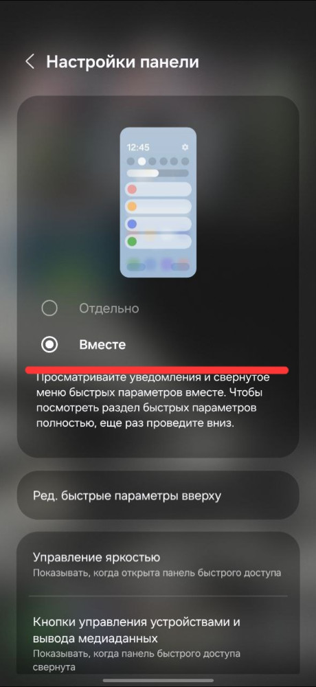 Приятно осознавать, что Samsung проявила гибкость в этом вопросе, оставив на выбор пользователя оба варианта оформления панели быстрого доступа. Так вы можете попробовать и разделённые экраны, и более привычный, объединенный, вариант, после чего выбрать тот, который подойдёт вам больше.